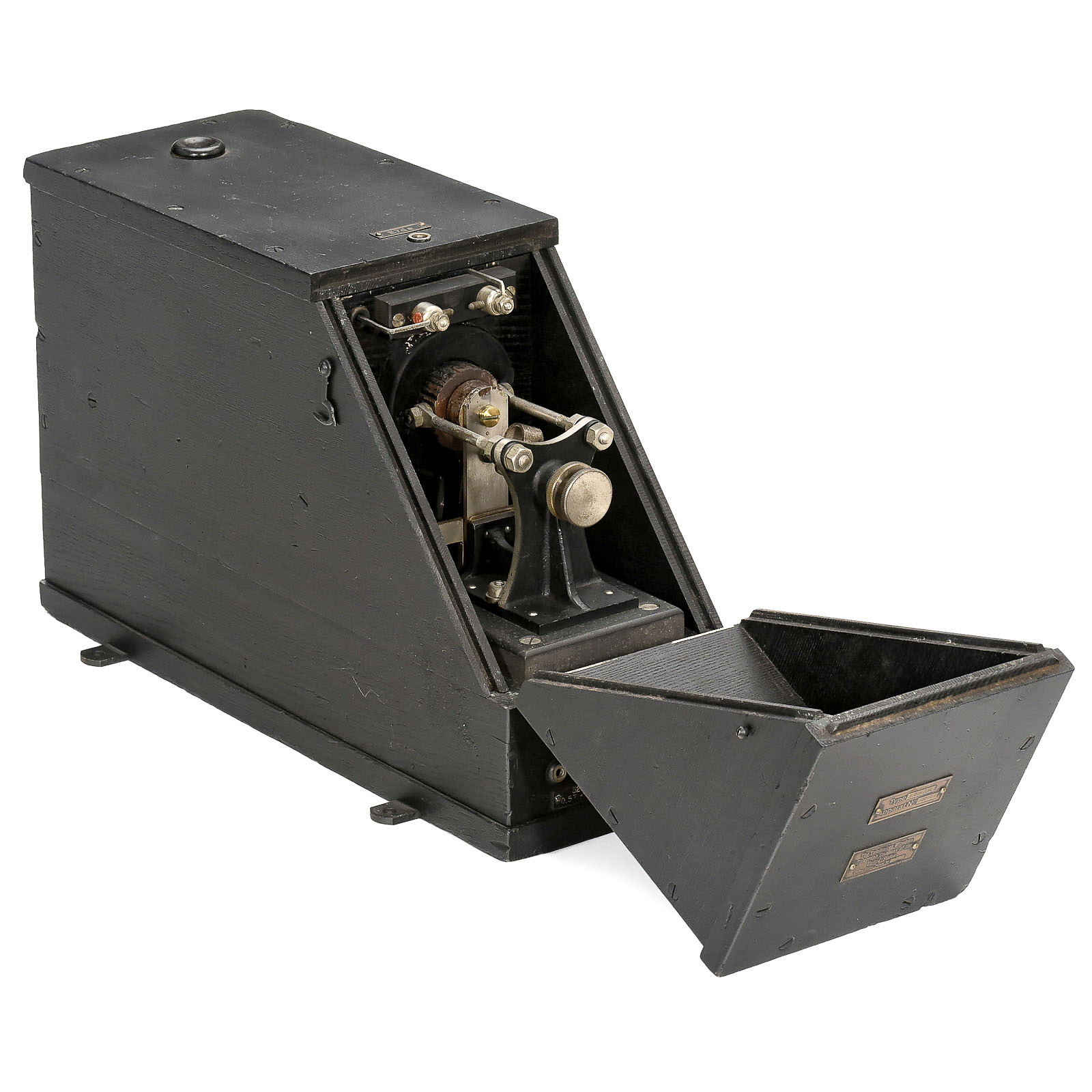 Made by "The Telefunken Wireless Telegraph Company of the United States", type T. 0,5 J.H., no. 3191, with induction coil and spark gap, wooden case 17 1/3 x 6 x 10 ¼ in.