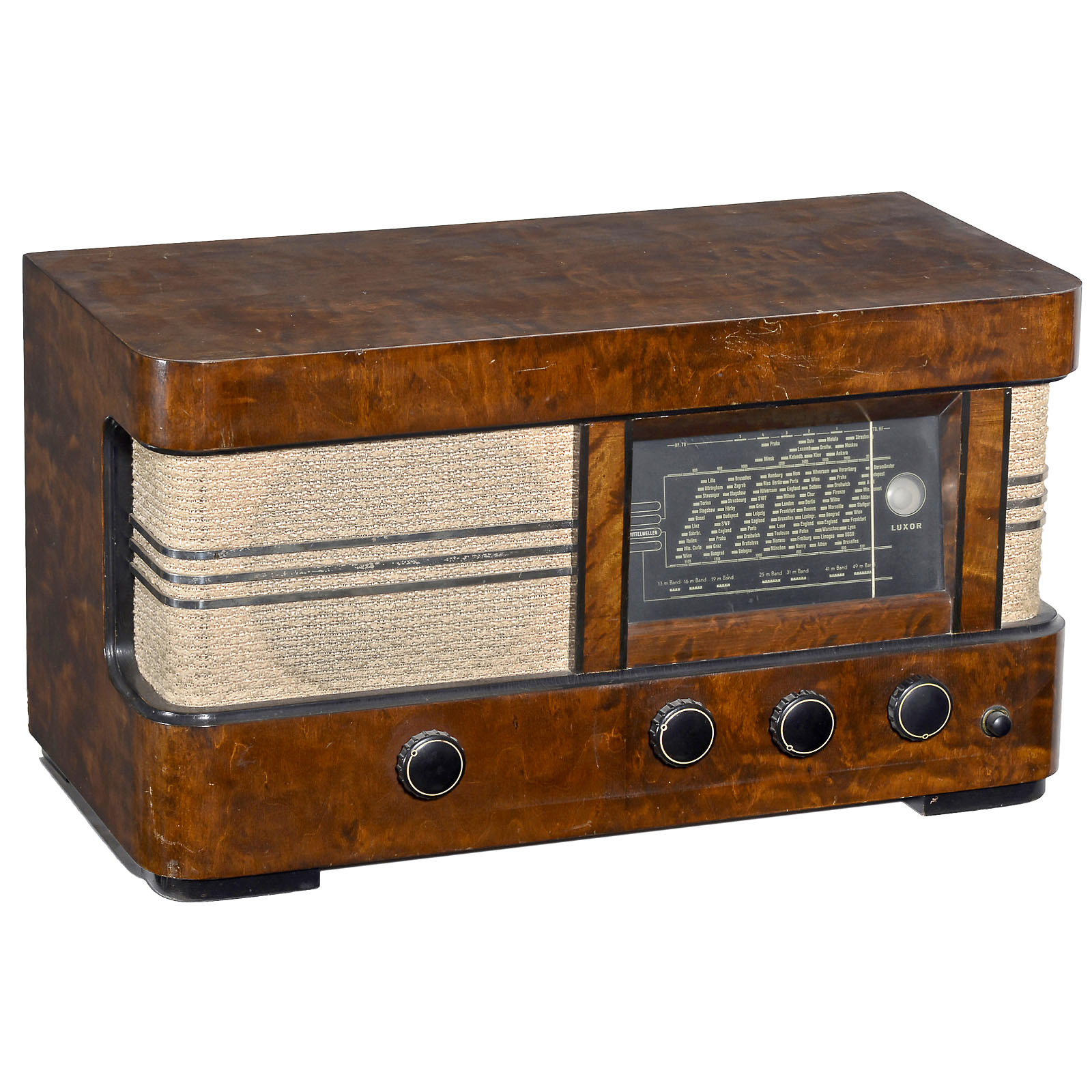 1) Radio-Meyer, France, type Bayard, 1948. – 2) Luxor Radio AB, Sweden, type 207WL, 1940. – 3) Sondyna AG, Switzerland, type Moderna E5815, 1958. – 4) Graetz, Germany, type 171W, 1953. – 5) Jura, Switzerland, type 215A2, 1945. – And: 6) Philips, Netherlands, type 03RB563/16, 1966.