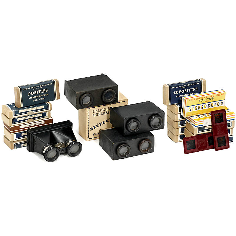 1,3台"Stéréoscope Bruguière",影像卡片规格45x107毫米,还有一个原装箱