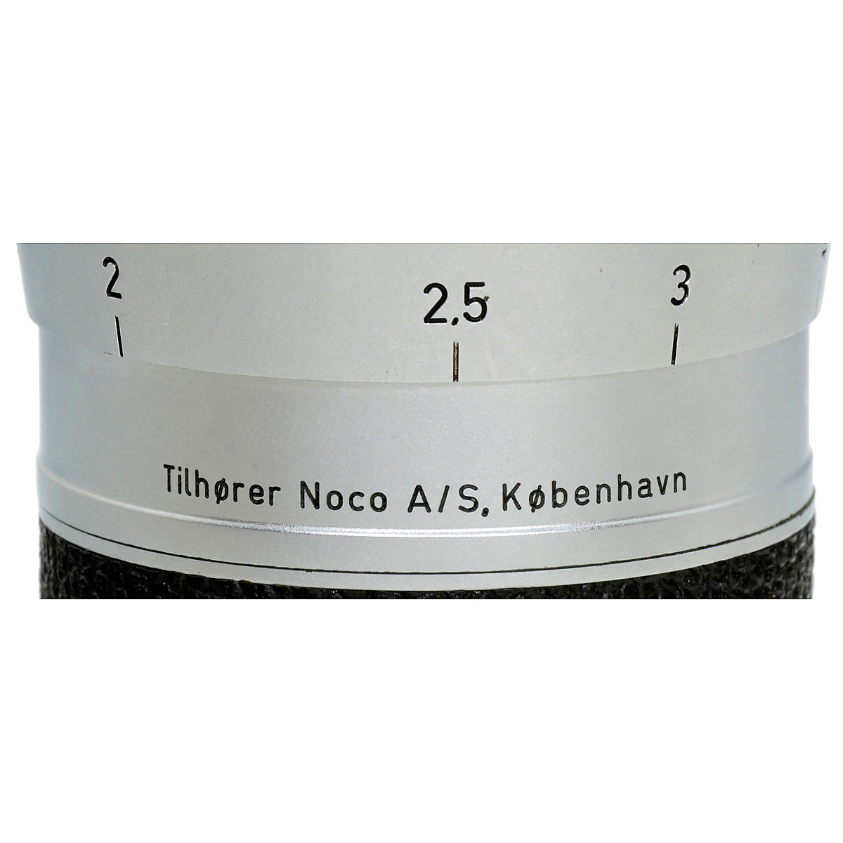 Leitz, Wetzlar. 1) Leica IIIc converted to IIIf, no. 517430, black-dial synchronization, selftimer, slow speeds stuck. – 2) Summarit 1,5/5 cm, no. 892450, meter. – And: 3) Hektor 4,5/13,5 cm, no. 854157, meter, both caps. – Camera and both lenses with additional engraving: "Tilhører Noco A/S, København".