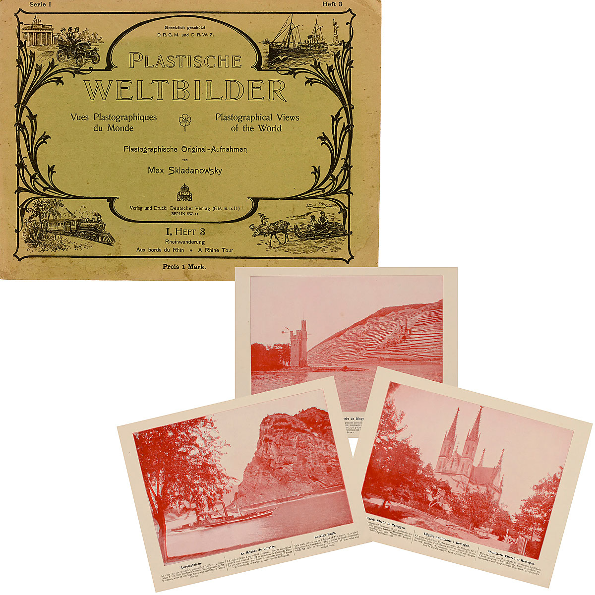 "Rheinwanderung" (a Rhine tour), 15 plastographical photos by Max Skladanowsky, series I, booklet 3, with original spectacles, printed in Berlin by Deutscher Verlag.