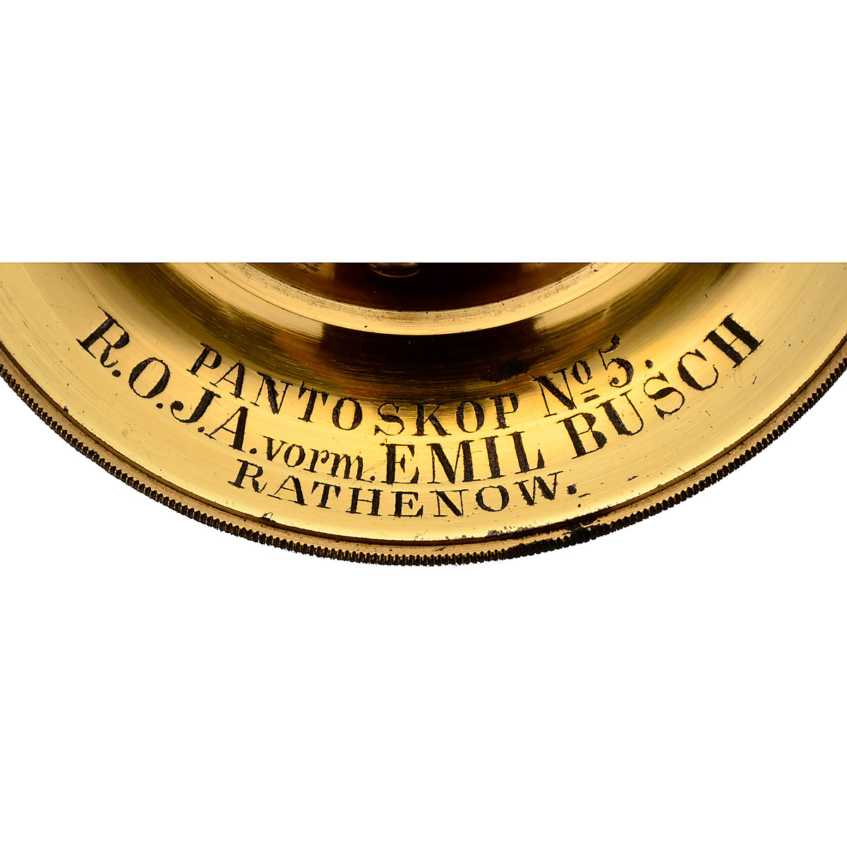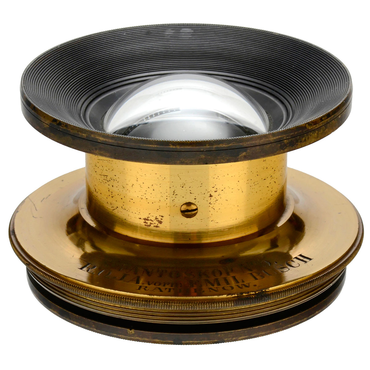 R.O.J.A. vorm. Emil Busch, Rathenow. Approx. 25 cm focal length, imposing brass lens, for waterhouse stop, height of the lens 2 in., Ø 2 3/4 in., rear cap. – Historically very important! – Excellent condition!