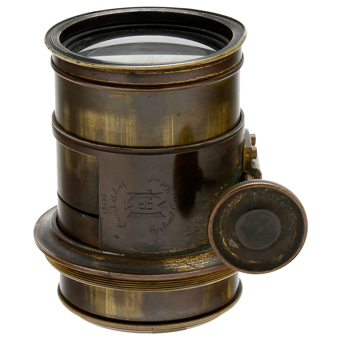 Export version for America, no. 12493, Petzval-type construction, focal length approx. 20 cm, for waterhouse stop, rack-and-pinion focusing, without lens hood, height of the lens 4 ¾ in., Ø 3 1/6 in.