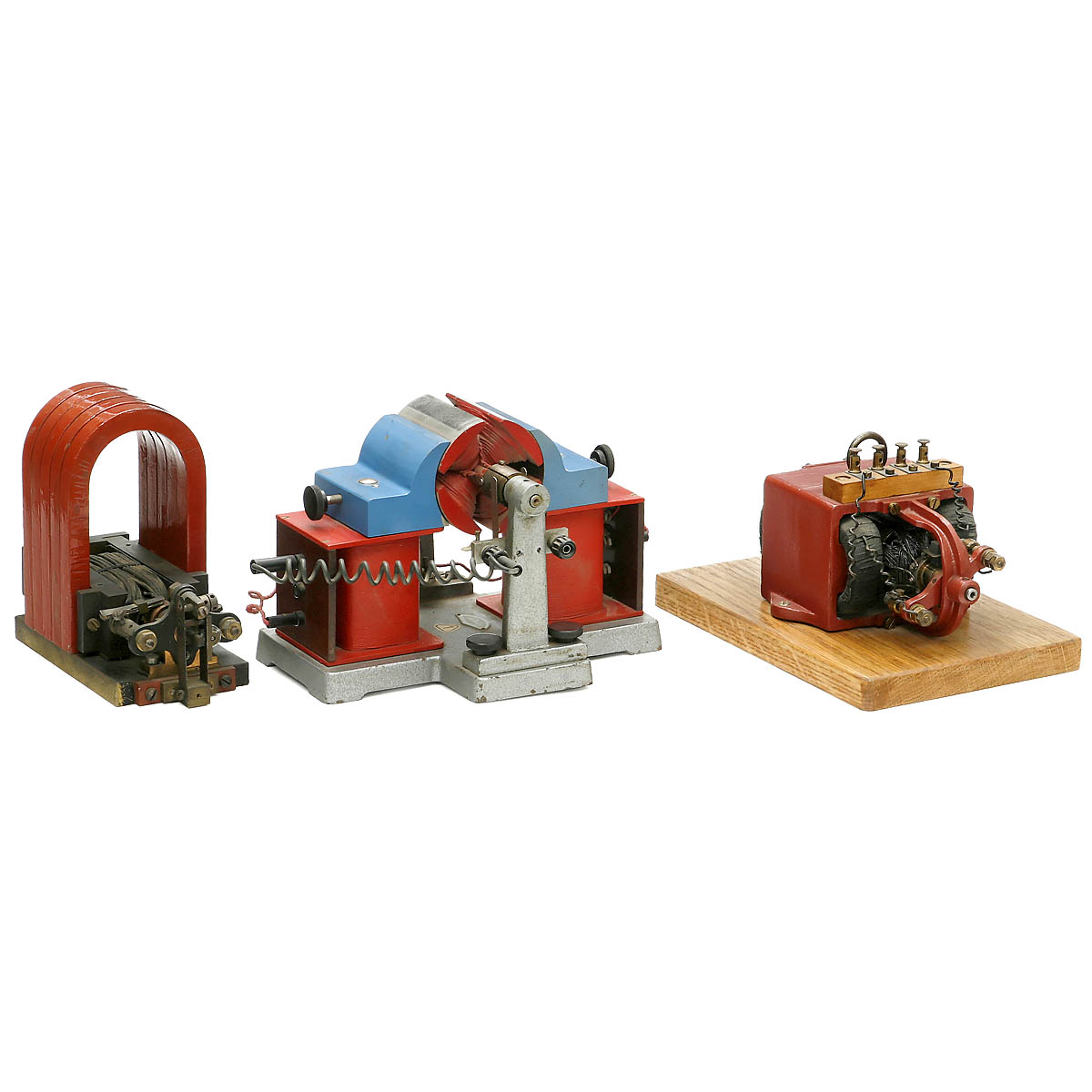 1) Made by "Lehrmittelanstalt Phylatex", GDR. Width 10 5/8 in. – 2) Unmarked, on wood board, width 10 ½ in. – And: 3) Unmarked, on brass base, width 10 1/5 in. – Good condition but untested.
