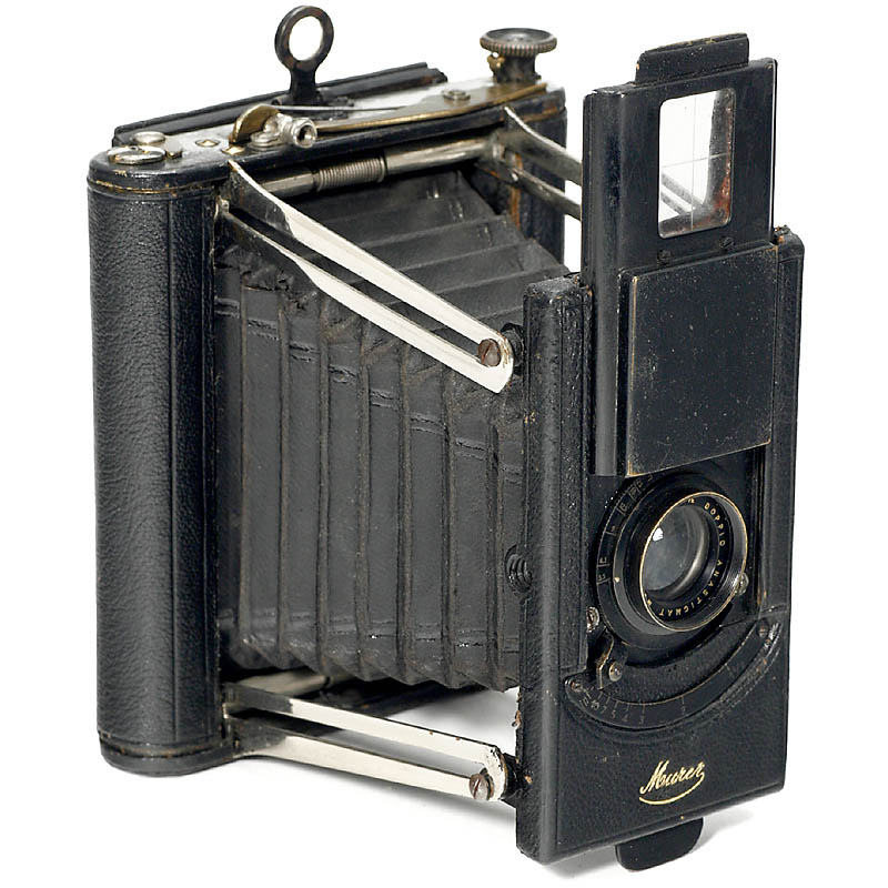 Murer&Duroni,Milan.折叠支架相机,size6x9cm,Mure Doplo Anstigmat5.5/102mm,焦平面快门,磨砂玻璃对焦屏后背,取景器有裂缝。