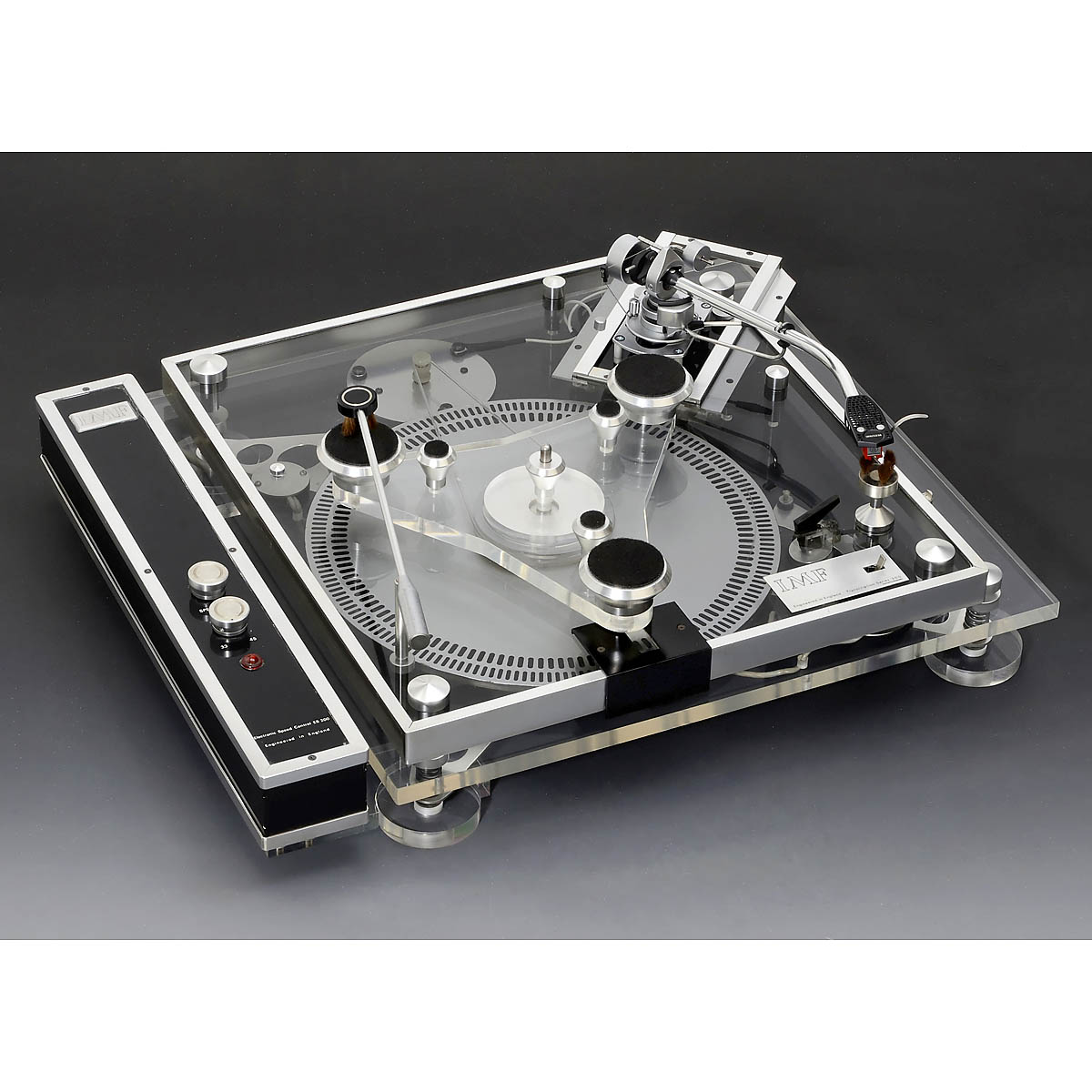 Manufactured by IMF Electronics, England. Serial no. 296, Perspex body, rubber belt drive, separate electronic speed control unit ES200 for 2 speeds, SME3009 pick-up on knife-edge bearing, Ø 11 3/4 in. aluminum disc with three-point bracket. A high-end hifi product, one of the rarest turntables in existence, only approx. 300 units having been produced. Working.