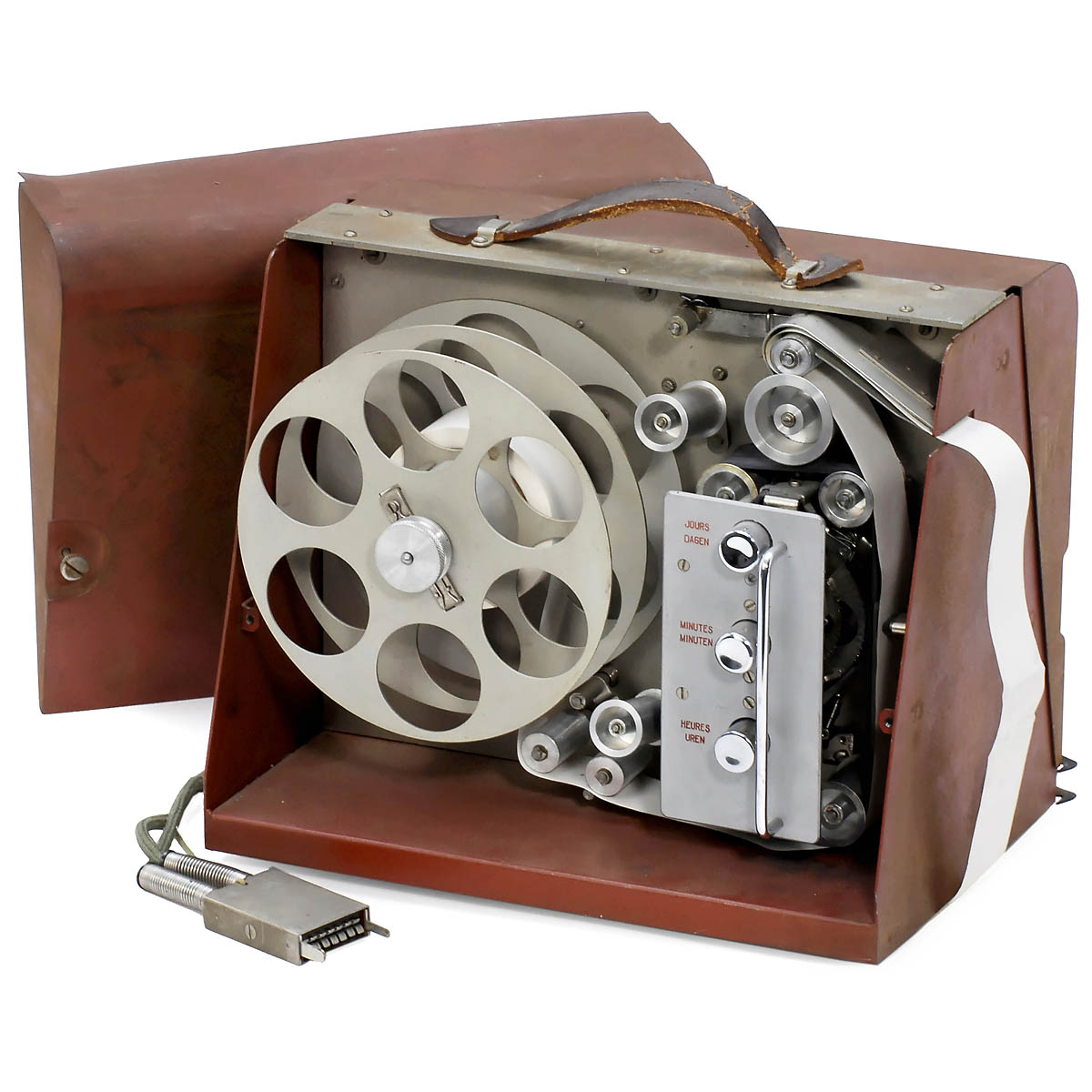 Pulse dial recorder, made by Bell Telephone AG, Belgium, electro-mechanical, with paper strip printer, in metal case.