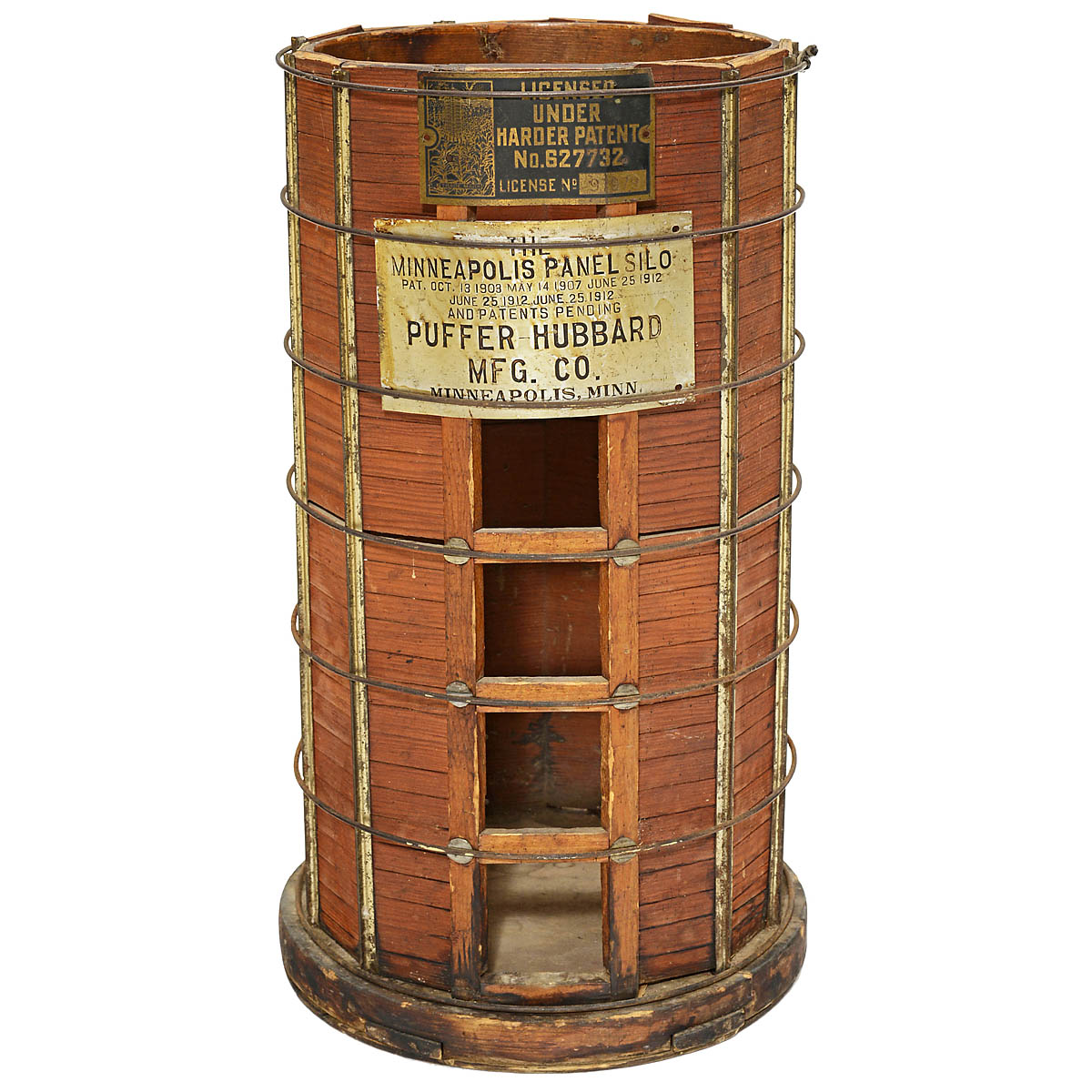 Original U.S. patent or salesman's sample. Made by Puffer Hubbard Mfg. Co., Minneapolis, MN/USA. Wood and metal, with maker's and patent plate, height: 16 in. With 3 U.S. patent copies from 1899, 1907 and 1912, and a postcard illustration of the completed silo dated 1912. - An absolutely unique and spectacular collector's item and exhibition piece!