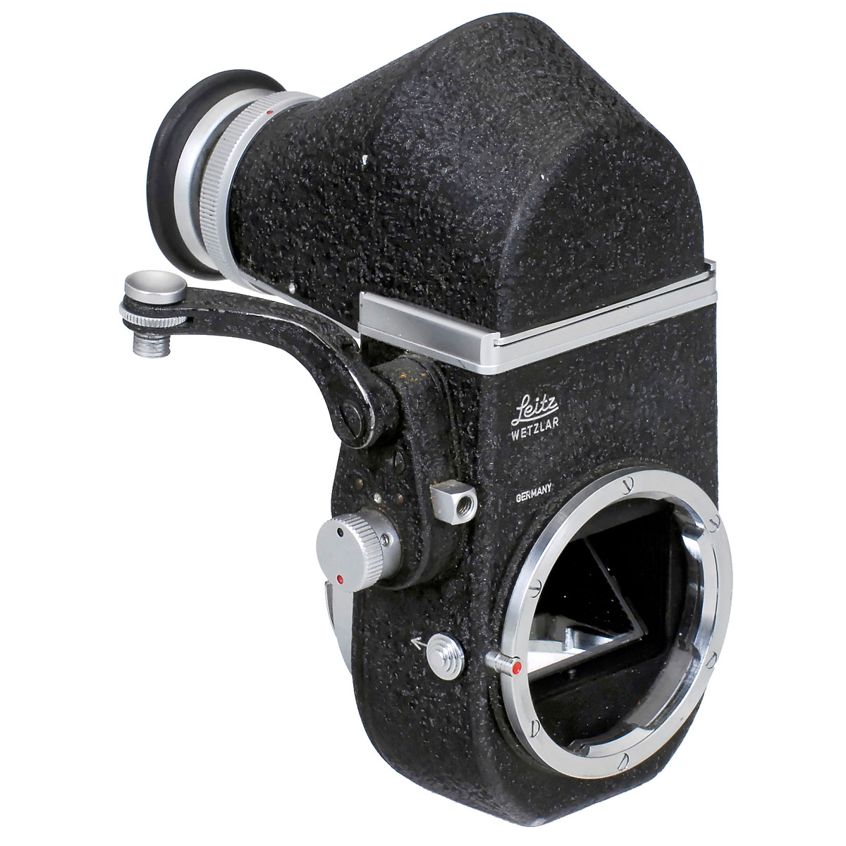 1) Leitz, Canada. No. 2413469, black anodized, extending lens hood. - And: 2) Visoflex III with 4x magnifier OTXBO/16460.