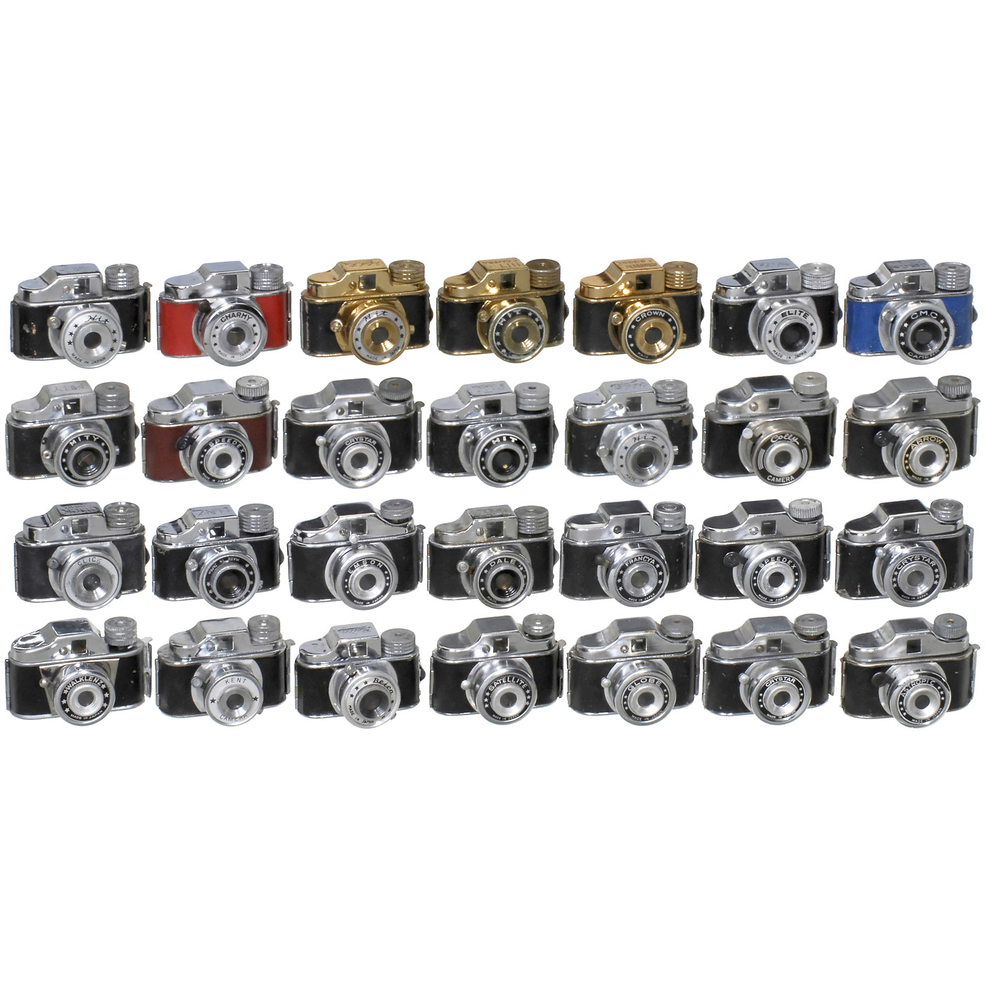 Type: "Kent", "Beica", 3 x "Crystar", "Astropic", "Satelite", "Francya", 2 x "Speedex (1 x in brown), "Arrow", "Crown" (gold), "Walklenz", "Lenz", "Colly", "C.M.C." (blue), "Mity", "Dale", "Click", 2 x "Hit" (gold), 3 x "Hit" (black), "Globe", "Charmy" (red), "Elite" and "Emson". - Several cases.