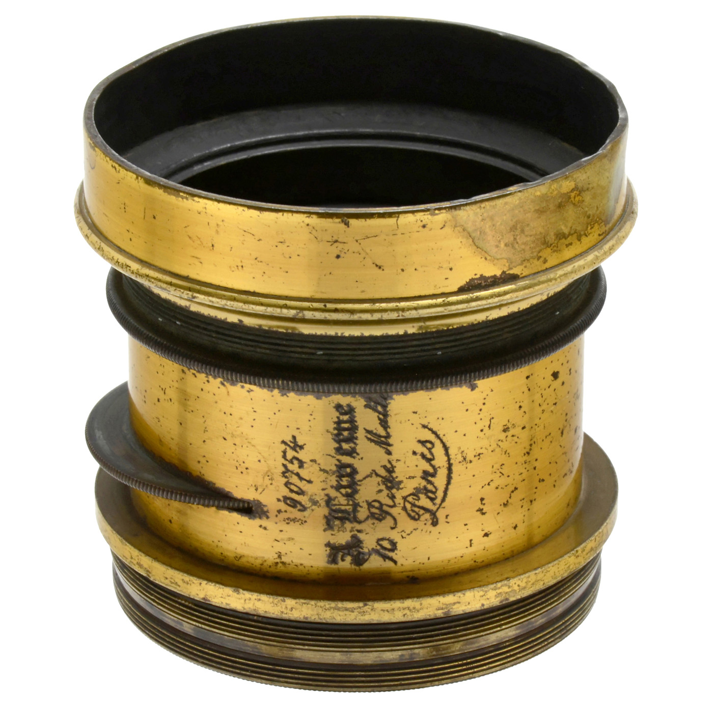 1) "A. Laverne & Co., Clément & Gilmer Sucrs Paris". Wide-angle "Periscope 4 ¼ x 3 ¼", c. 1887, approx. 8 cm focal length, lens Ø 2/3 in., height 1 1/5 in., connecting ring Ø 1 2/3 in., rotating stop. (2/2) - 2-3) 2 wide-angle lenses by Laverne & Co. (Gasc & Charconnet), c. 1887-1890. Wide-angle lens, no. 101550, rotating stop, height ¾ in., Ø 1 3/5 in., connecting ring Ø 2 ½ in. - Wide-angle lens, no. 90754, with approx. 17 cm focal length, rotating stop, height 2 1/3 in., Ø 2 1/3 in. (2-3/2-3) - And: 4) Caterpillar projection lens, c. 1899, unmarked, engravings: 12, 15, 18, 20 and on the brass rims 9 and 12, rack-and-pinion focusing, height 5 ½ in., screw-mount Ø approx. 2 2/3 in. (3/3)