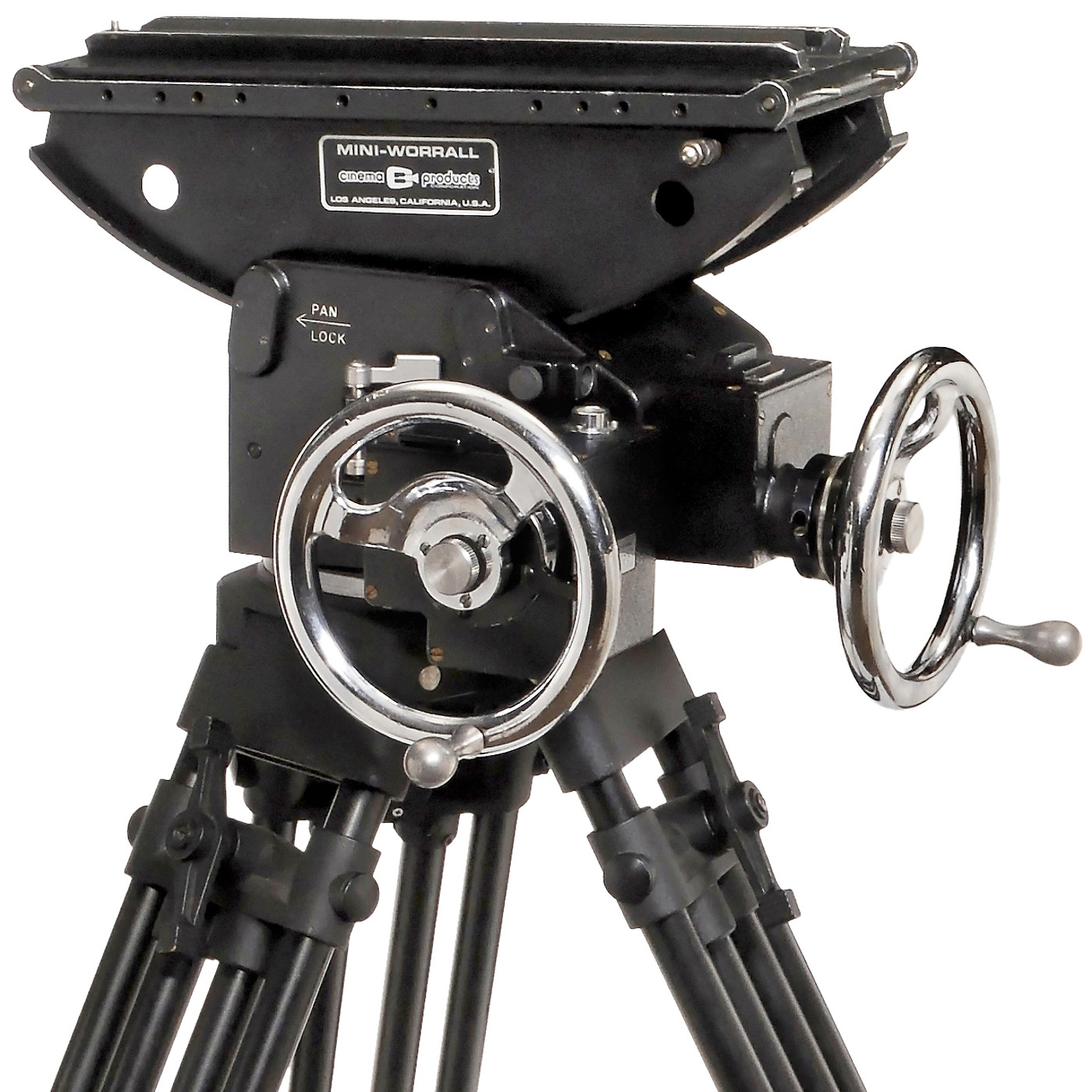 Cinema-Products Los Angeles, USA. Shock-resistant special head (vertical and horizontal) for large and heavy 35mm movie Technicolor cameras. A milestone of US tripod and head technology! - In addition: Carrier box with many accessories and case.