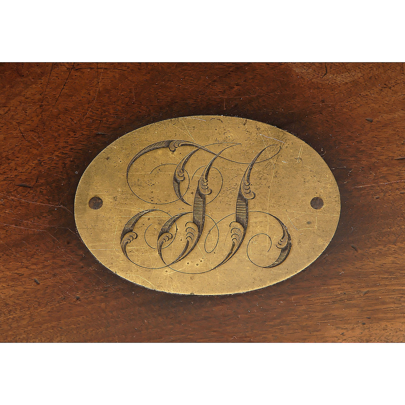 This model has the damping box in the bottom drawer. - On February 14th, 1780, in England, more than 230 years ago, James Watt, inventor of the large steam engine, was granted a patent no. 1244 for his first duplicating machine. The machine was sold by James Watt & Company, Soho/Birmingham, England. His invention grew out of the needs of his own business as he had permanent correspondence with his partner Matthew Boulton while traveling - mostly to his steam engine projects in Cornwall. James Watt was too often frustrated when he received Boulton's answers to his own written questions after an absence of several weeks, because of course he had no copy of the original correspondence. The result was Watt's development of the world's first portable copying press! By the end of 1780, 150 machines had already been sold, rising to 630 by the conclusion of the first full business year! - It is reported that in the early 1780s Benjamin Franklin, George Washington and Thomas Jefferson used the James Watt copying machine! In 1785 Jefferson was using both the stationary and the portable presses by James Watt & Co. - The portable case opened on hinges, and its upper section contained a collapsible writing pad for preparing the documents. The typewriter had not yet been invented, and copies could be produced from handwritten letters, diagrams and drawings executed in a special copying ink! Underneath the writing pad was a compartment for used letters after the copying process was complete. The bottom part contained a special compartment (the "damping box") which was used for treating the copying paper. After 12 hours of preparation, the sheets were thoroughly moist, and thus treated and ready to be used for copying. The number of sheets required for immediate use could be removed, and the remainder left in the box for up to two weeks, ready to be used at any time. - The actual copying apparatus consists of two brass plates turned via the side handle, located in the bottom section of the case. The original document was placed in the copying plate in between the felt-covered swing-up cover plate; the moist copying paper was placed on top of it, and was then covered by oilpaper. The pressure, induced by slowly turning the plate, caused the special copying ink of the original to be taken up, and thus transferred, onto the moist sheet (mirror inverted). The copy was ready for use after 24 hours in a drying book of absorbent paper (as used for postage stamps). Because the ink was offset in this manner, the printing on the copy could, of course, be read only on what was actually the reverse side of the page. The prerequisite for producing good copies was the special copying ink in which the original was written. A great deal of practice was also necessary to prepare sheets for use as copying paper, since they had to be uniformly moistened. The case also contained inkwells as well as containers of dry ink powder for making up ink when traveling.