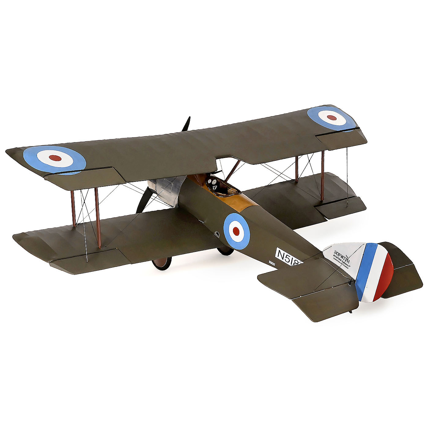 A well-constructed wood-framed flying scale model of this Royal Flying Corps fighter aircraft, with fully working flying control surfaces, the fabric covered fuselage, wings and tail finished in R.F.C. olive-green and national markings of the period, with excellent cockpit detail including throttle controls, instrument panel, control column, rudder pedals and other items, the engine cowl and forward fuselage with aluminum paneling, with dummy rotary engine and propeller, on strut-braced main undercarriage, the wheels with rubber tyres, with tail skid, 79 in. (200 cm) wingspan.