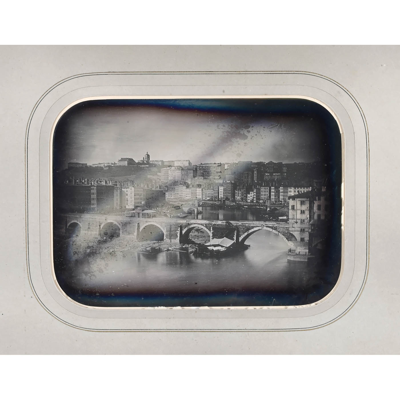 "Pont de Pierre", Lyon. Philippe-Fortuné Durand, engraver and photographer, regarded as the first professional photographer from France. - Cover glass professionally replaced (original cracked) and re-sealed. With decorative wooden frame. - Literature included: "Prestige de la photographie", volume 3 and 4, p. 5-7 and 15-17.