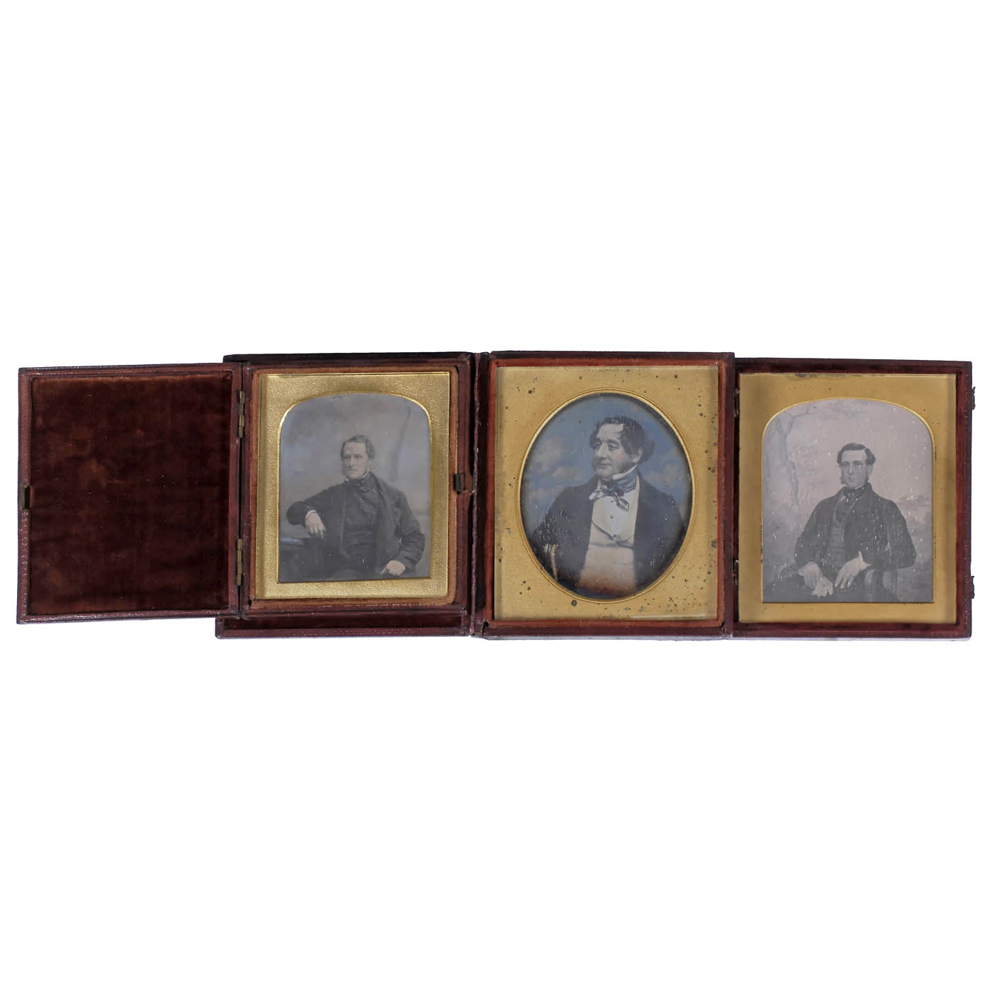 Portraits of gentlemen. 1/6 plates, lightly hand-tinted, brass passe-partout, cases with covers. Good to excellent illumination and contrast.