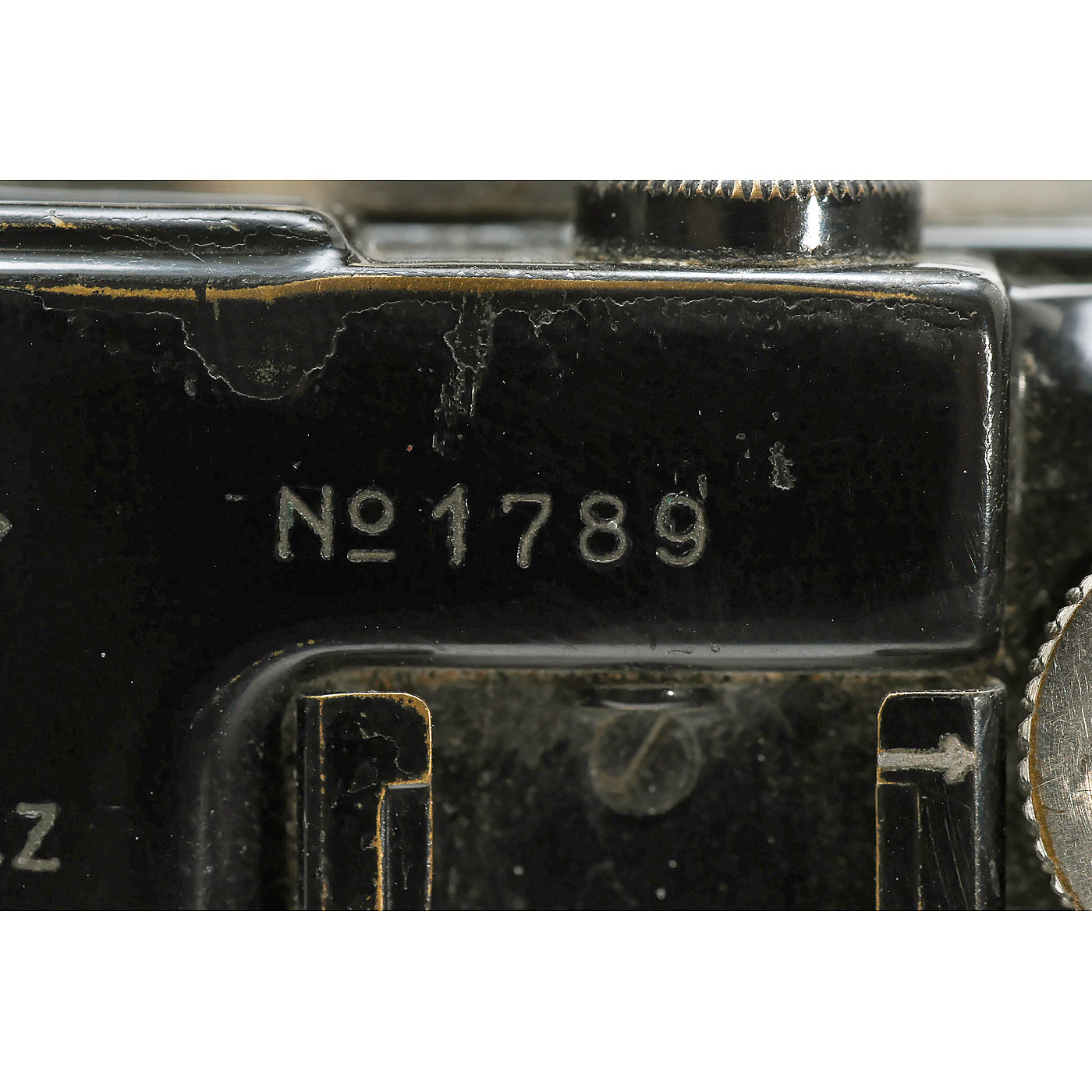 Leitz, Wetzlar. "No. 1789". Nickel Elmar 3,5/50 mm, no. 159460. – Very early camera serial number!