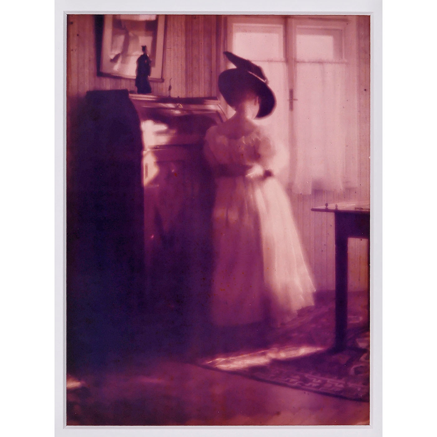 "Lady in back light" (H. Kühn, 1912). Reprint from original autochrome plate, 18 x 24 cm, limited edition no. 18/100, on Kodak RC 14 paper. Signed: "Lotte Schönitzer-Kühn" (wife of Heinrich Kühn).