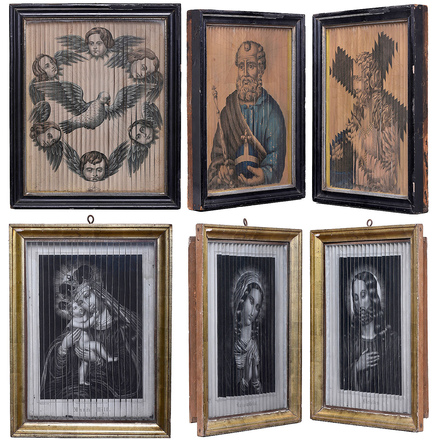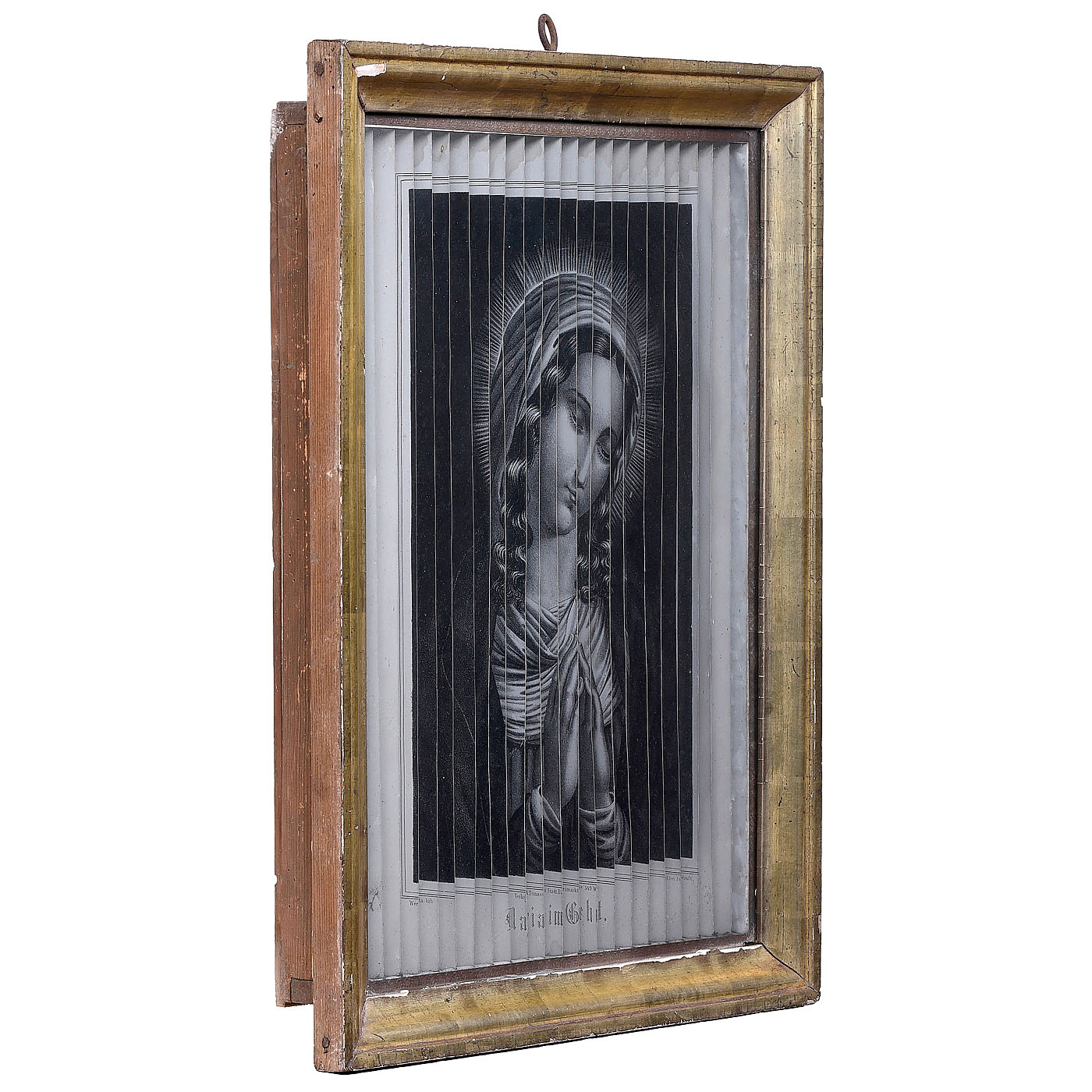 1) Picture of the virgin Mary and Jesus, publisher "V.A. Tomaselli, Wien, Hohenmarkt 549". "Werosta lith.", size 12 ½ x 18 ¼ in., c. 1880–1900, wood frame. (3/–) – And: 2) Representation of angels and dove, c. 1900, lithograph, colored, unmarked, size 11 ¾ x 14 ½ in., wood frame. (3-/–)