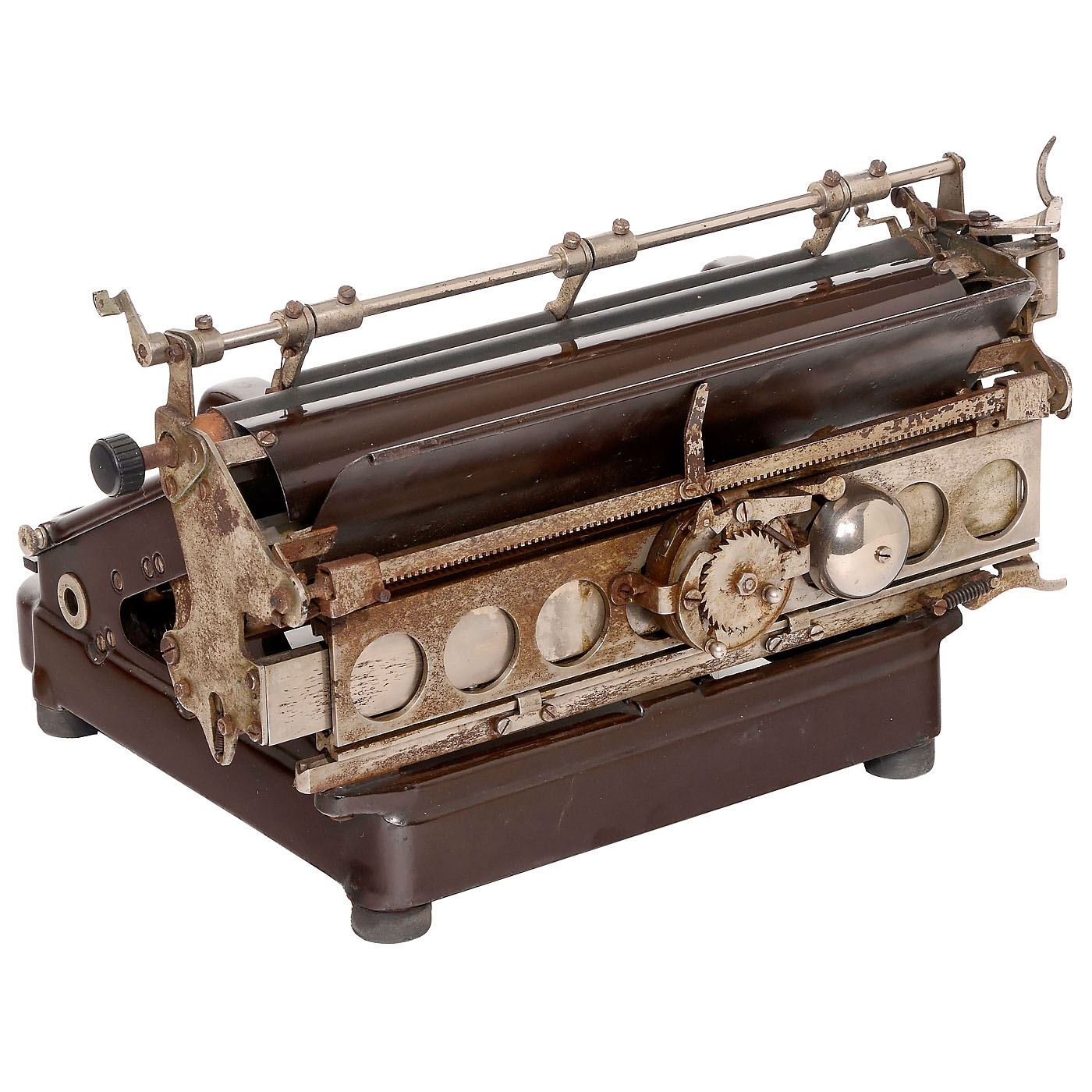 Serial no. 5199, Japanese patent no. 71276, with 2450 Japanese characters arranged on a belt band of 70 lines, each with 35 letters, numbers and symbols. The Japanese dictionary contains around 50,000 characters, so developing a typewriter proved very difficult. This machine was unsuccessful on a large scale, so this model is very rare today!