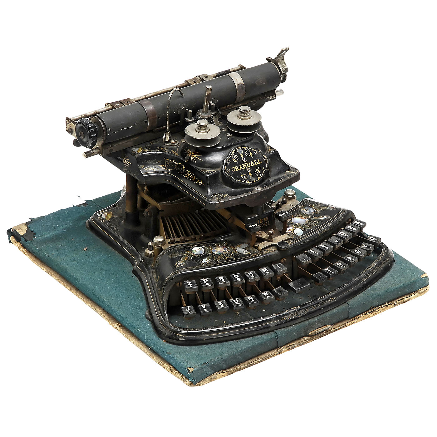 Good example of the popular American typesleeve machine by The Crandall Type Writer Co., Syracuse, N.Y. – Serial no. 1027. One of the most attractive typewriters with its mother-of-pearl and gilt decoration. In unrestored condition. – A superb pioneer of office communication, collector's item and museum piece. Would benefit from an overhaul.