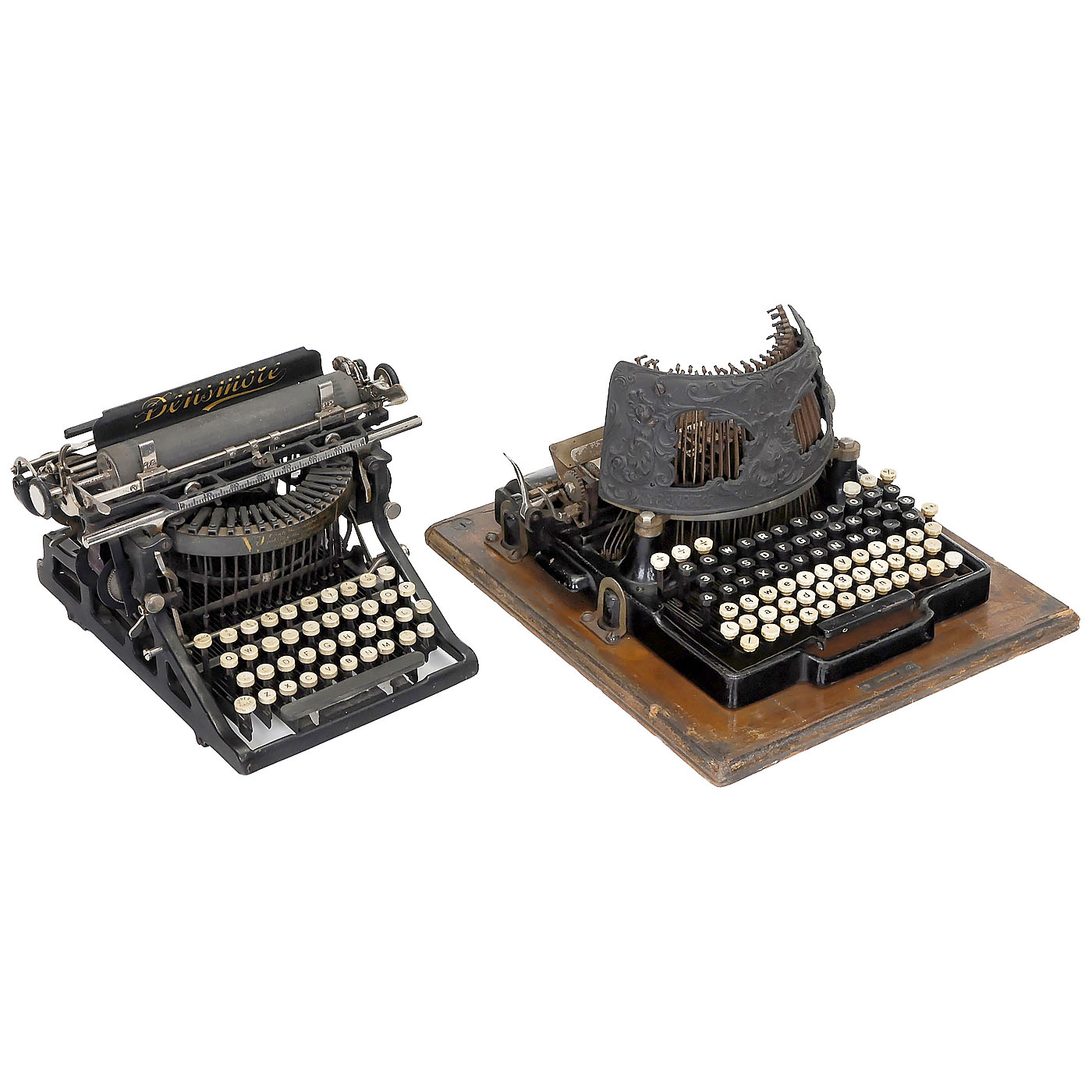 1) "Densmore No. 1", 1891, 1st model of this classic American upstroke machine. Serial no. 1412, carriage movement a bit stiff. – Literature: Martin, 1949, p. 125. – Historically important collector's item in good original condition! – And: 2) "Bar-Lock No. 7", 1895, English model of the American "Columbia Bar-Lock", made by The Type Writer Company Ltd. London. Attractive design, serial no. 34321, parts of mechanism rusty. – Literature: Martin, 1949, p. 102.