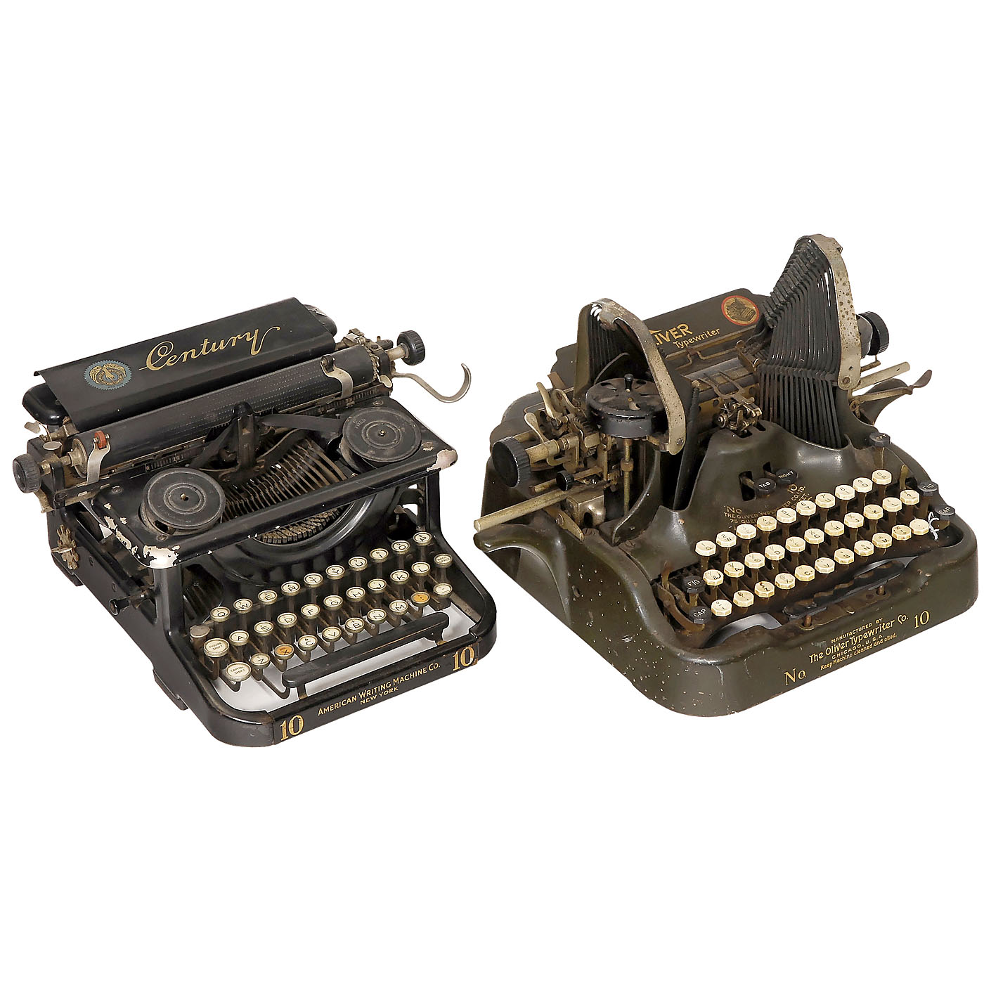 1) "Century No. 10", c. 1920. Manufactured by American Writing Machine Co., New York, serial no. HM644. – And: 2) "Oliver No. 10", c. 1920. The Oliver Typewriter Co., Chicago, serial no. R41001.