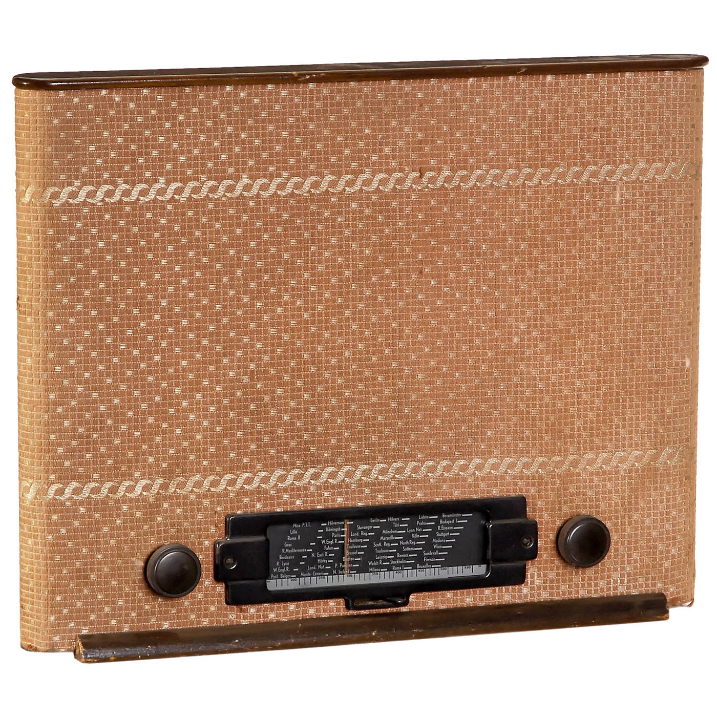 1) Telefunken Concertino 55, 7 tubes, 4 wave ranges, 1955. - 2) Philips BX 360A, 4 tubes, post-war low-cost radio, in the Netherlands known as "wailing wall", 1946. - 3) Philips 990X, 8 tubes, 2 loudspeakers, station keys, a deluxe Dutch model, 1940. - 4) Amroh MK4350, Dutch kit radio, 6 tubes, 1950. - 5) Fridor 524, Den Haag, 6 tubes, 1951. - And: 6) Erres KY457, Den Haag, 5 tubes, c. 1950.