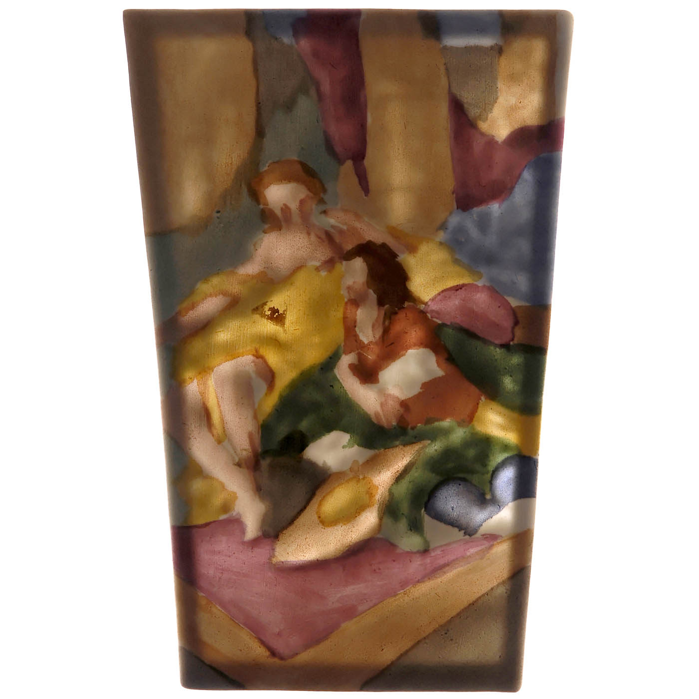Lithophanie Française, Paris. 1) 10 x 11,8 cm, boy and girl play at photography, reverse with original holder and mark "P.R 1397". - 2) 7,7 x 9,2 cm, girl feeds kittens, reverse marked "ppMO 849". - 3) 19,8 x 15,7 cm, a respectable person pays an unexpected visit in a public house, reverse marked "PPM 703". - And: 4) Trapeze, 18 x 8,8 x 12 cm, erotic scene, reverse tinted.