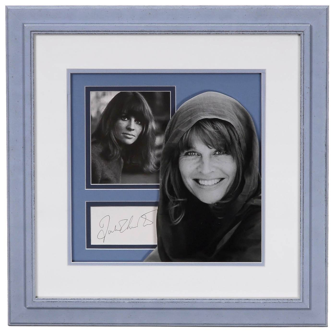 Signature by Julie Christie ("Doctor Zhivago", "Don't Look Now") matted with a small black-and-white portrait and a floating black-and-white photograph, with certificate of authenticity, size with frame 15 1/3 x 15 1/3 in.
