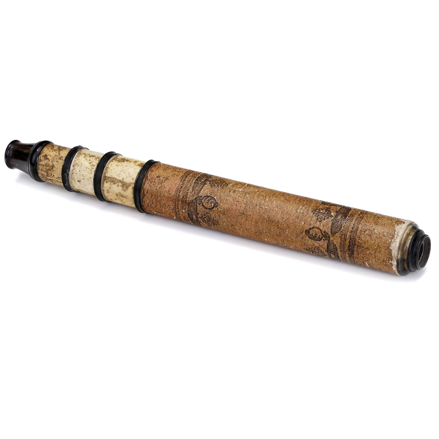 Stamped on the outer tube "Olivo Venetia", Multilayer pasteboard tube, ornamentally embossed parchment outer tube, turned horn lens and ocular mounts, Ø 1 ¾ in. - Literature: Pierre Marly, "Lunettes & Lorgnettes", p. 135.