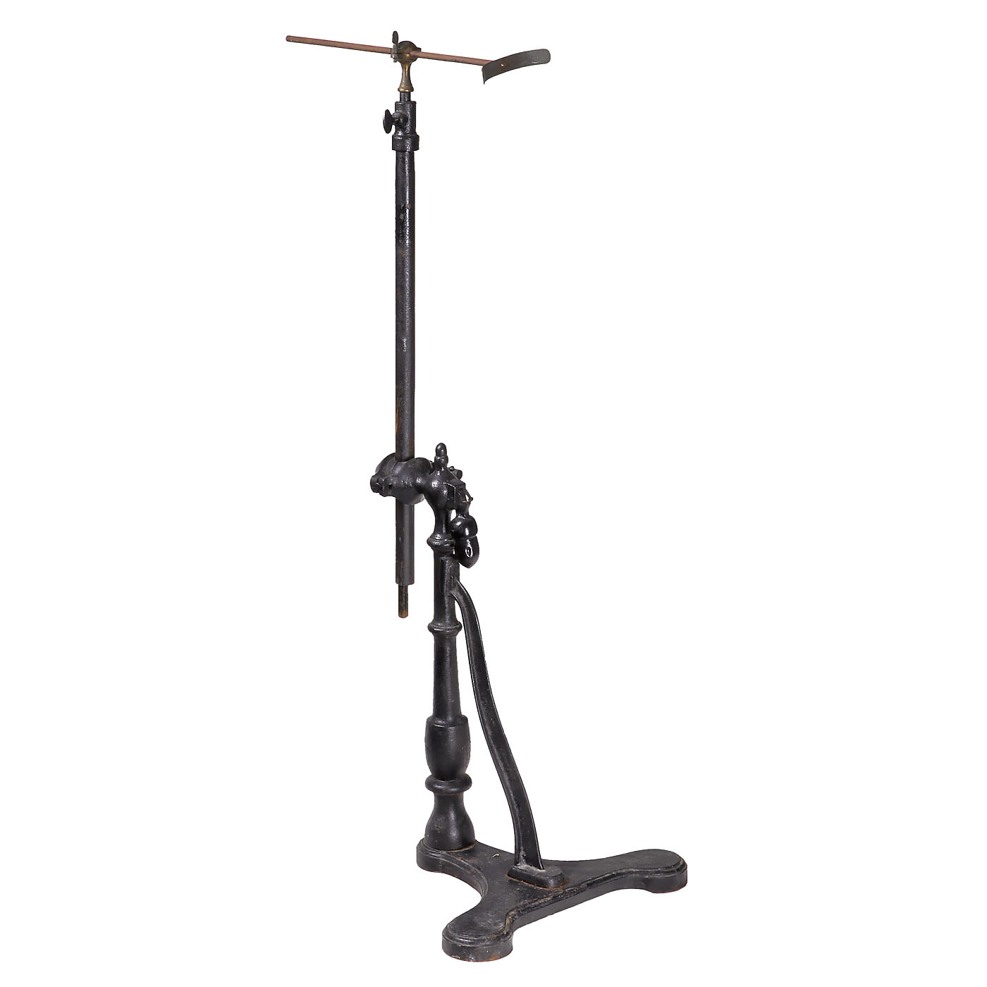 France. Cast iron, very heavy and extremely robust, with ball-and-socket joint and handle for transport, ht. retracted 80 cm, extended 118 cm. Indispensable accessory for the 19th century photographic studio.