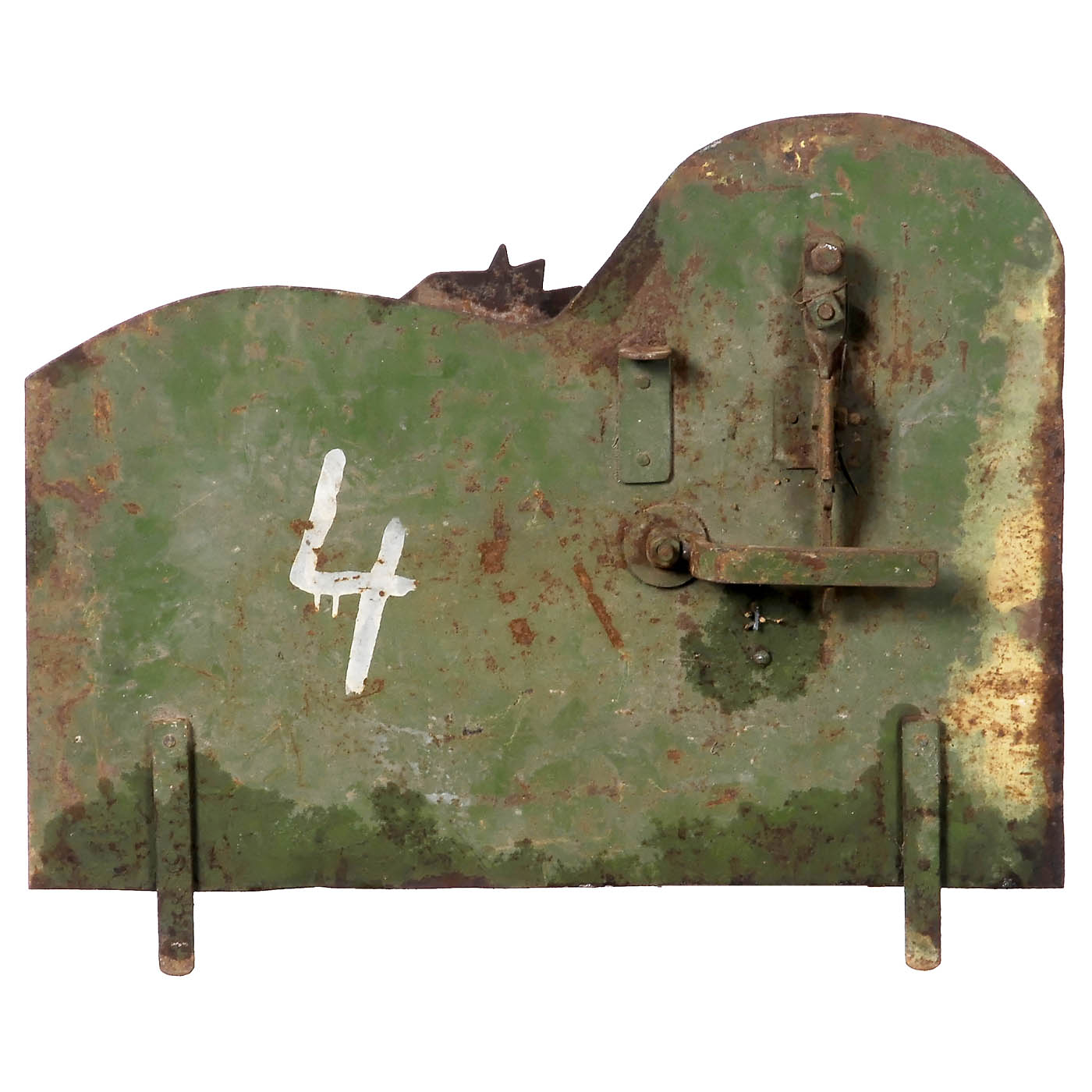 Weight-operated mechanical targets, 1) "Lion". 2) "Monkey" and "Gazelle", hand-painted sheet metal, size 19 ½ x 15 ½ in. Sheet metal and paint well preserved except for shot marks, missing springs and one target. – Note: Mechanical shooting gallery figures were a popular fairground attraction from the 1870s–1920s. They were mostly made by gunsmiths who also supplied the rifles for the shooting stands. The shooter had to aim at the small round target, which triggered the weight-driven animated scene when hit. Behind the targets, a showman's assistant was kept busy returning the mechanism to its original position. – Rare to find. Fairground nostalgia of museum quality!