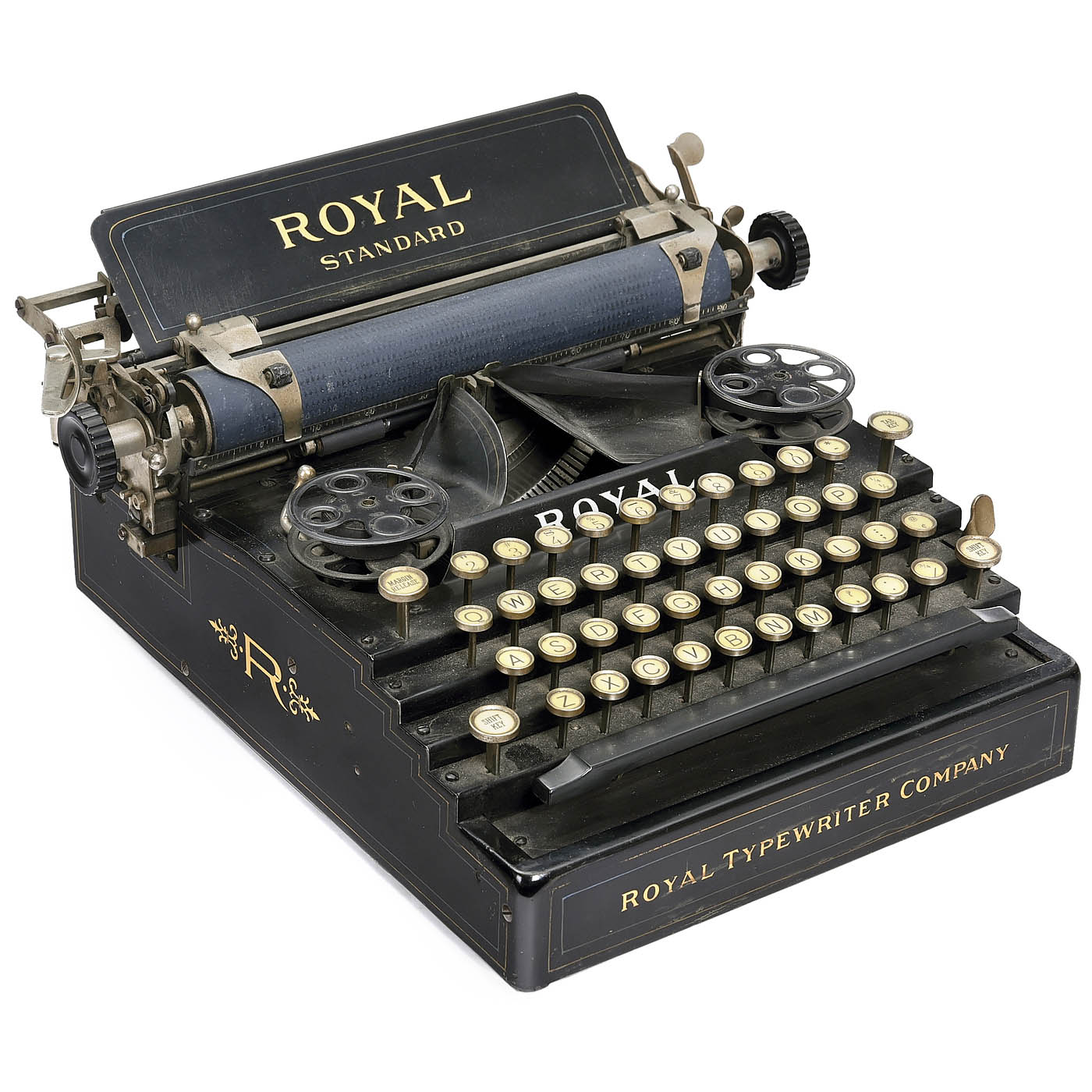 1) "Mercantile" (Armstrong Mod. 8), 1903, rare model name for the upstroke typewriter "American" (or in England: "Armstrong Mod. 8"), paper table uneven, mechanism sticks. – Literature: Martin, 1949, p. 125. – 2) "Remington Junior", 1917, three-row frontstroke machine, partially rusty. – And: 3) "Royal Standard No. 1", four-row flatbed frontstroke machine, mechanism sticks.