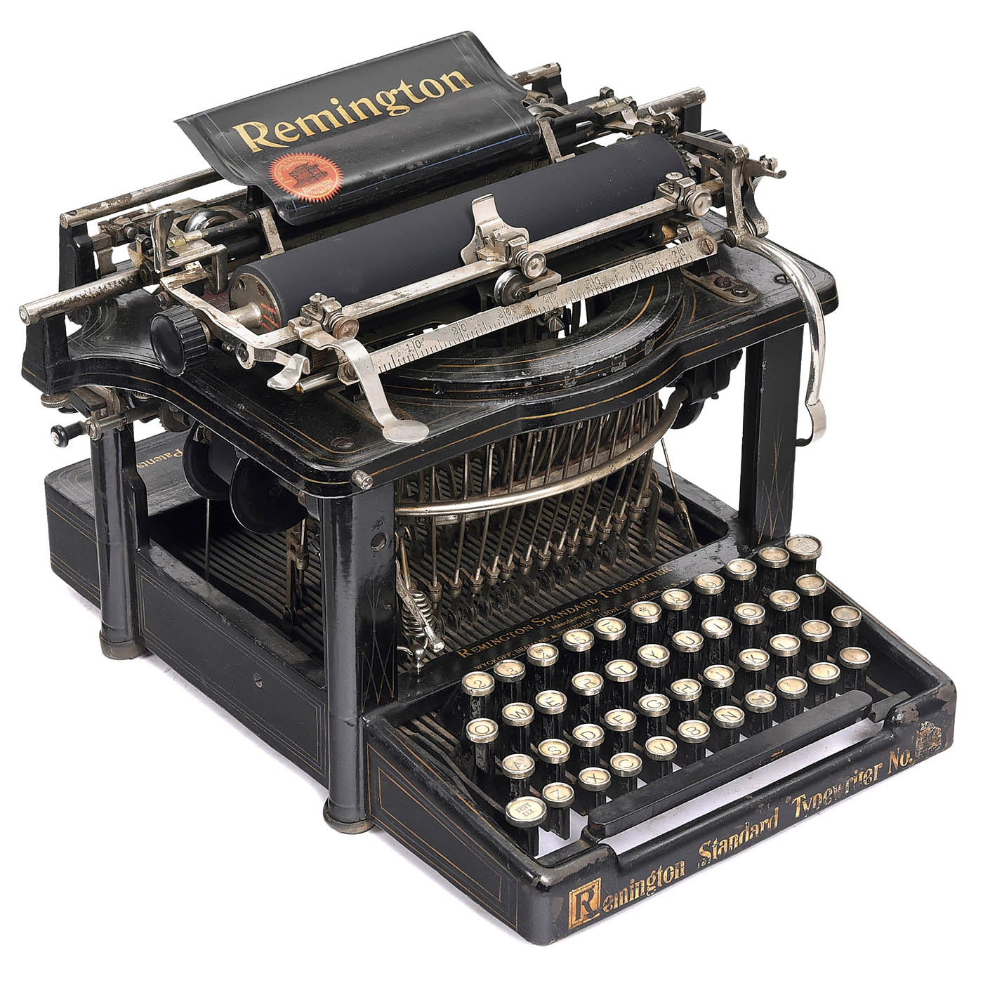 1) "Remington Standard No. 6", c. 1895, serial no. 53911, upstroke machine, wood typebars, with many improvements to Remington’s previous models, working. (3-/3+) – And: 2) "The Caligraph No. 2", 1882 onwards, serial no. 5746, upstroke machine with full keyboard and shift-keys on both sides, 72 keys in 6 rows, mechanism incomplete, some loose parts included, missing 3 keytops. (4/5)