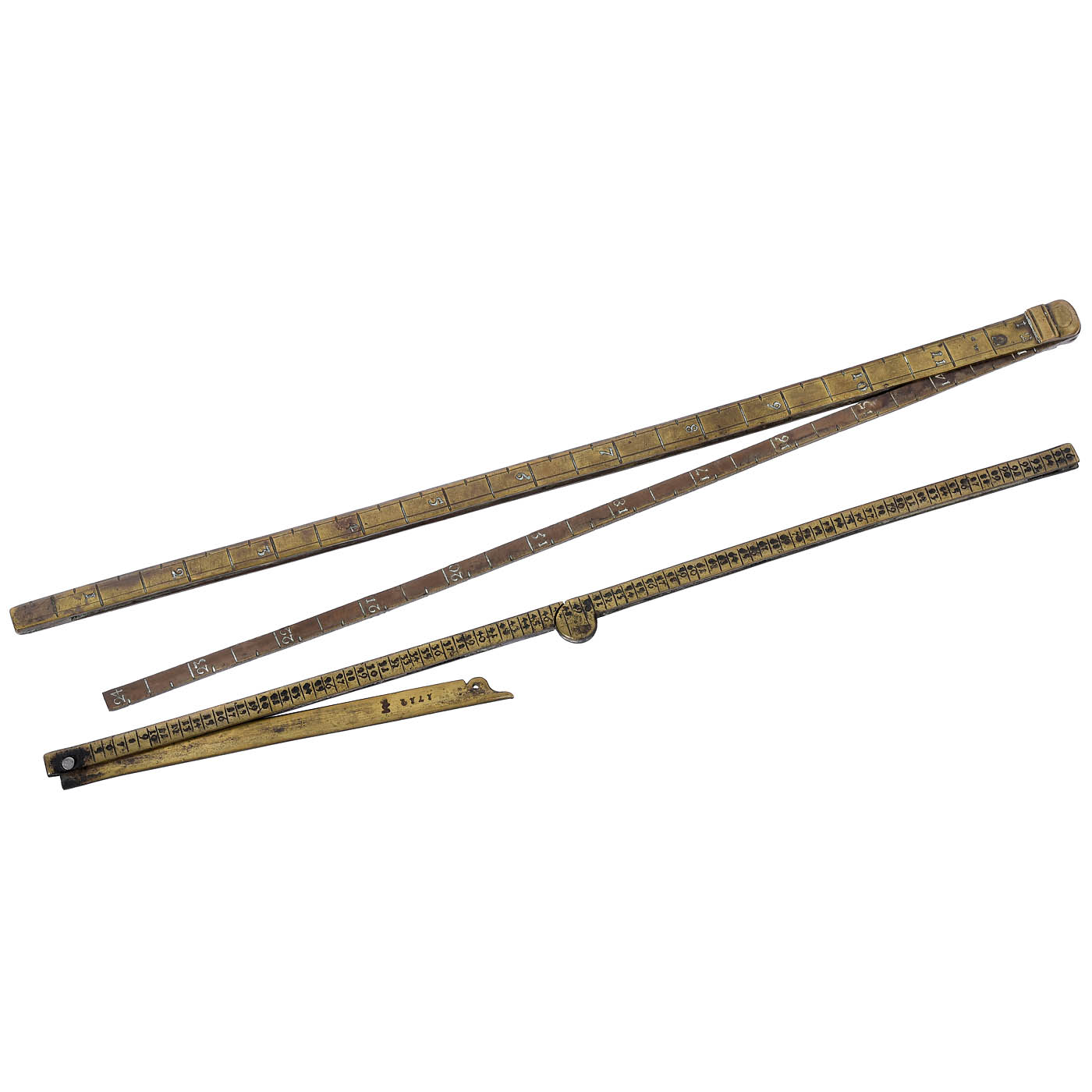 Brass, finely engraved and hallmarked. 1) Three-piece, dated 1712, length 12 in. – And: 2) Two-piece, hallmarked with horseshoe symbol, length 24 in.