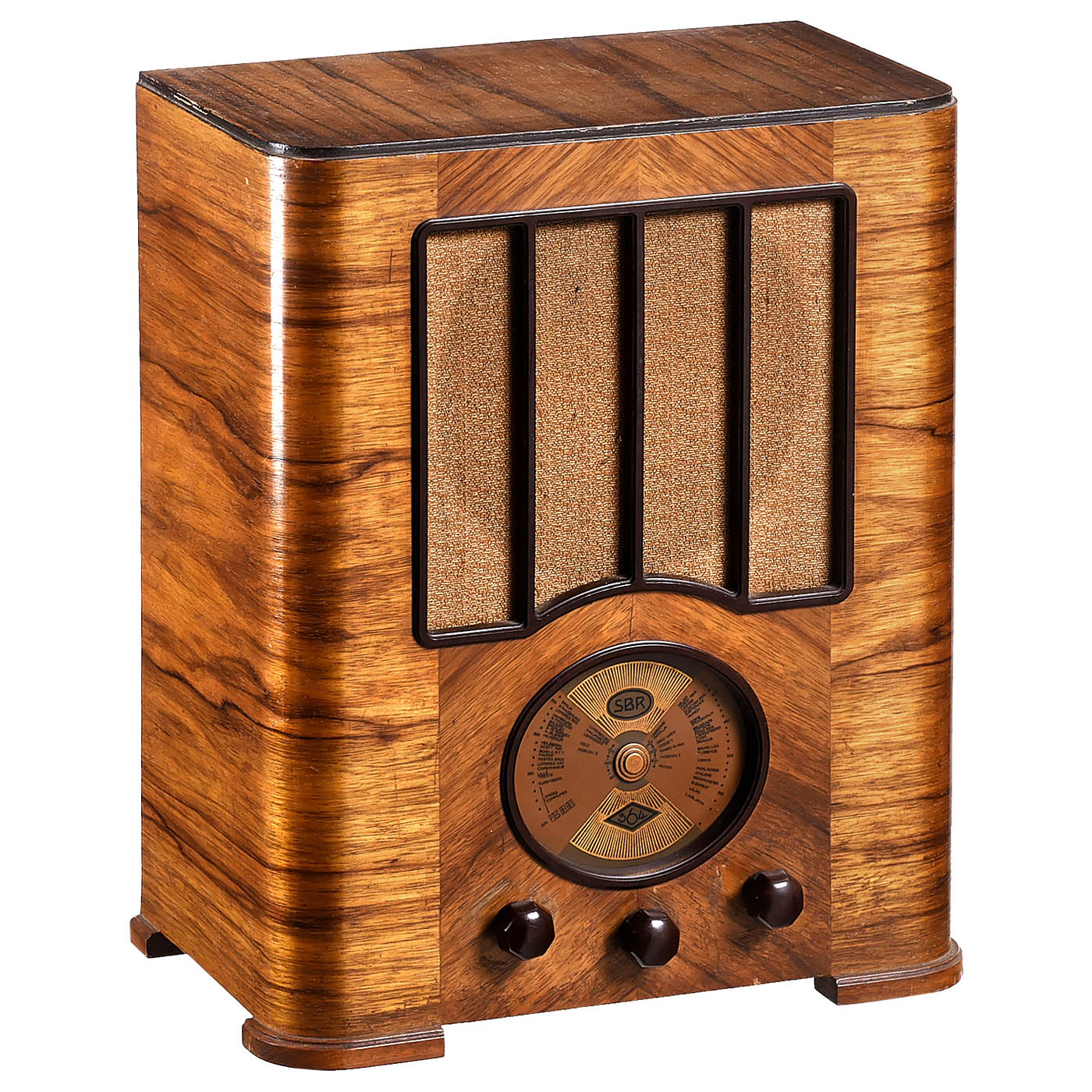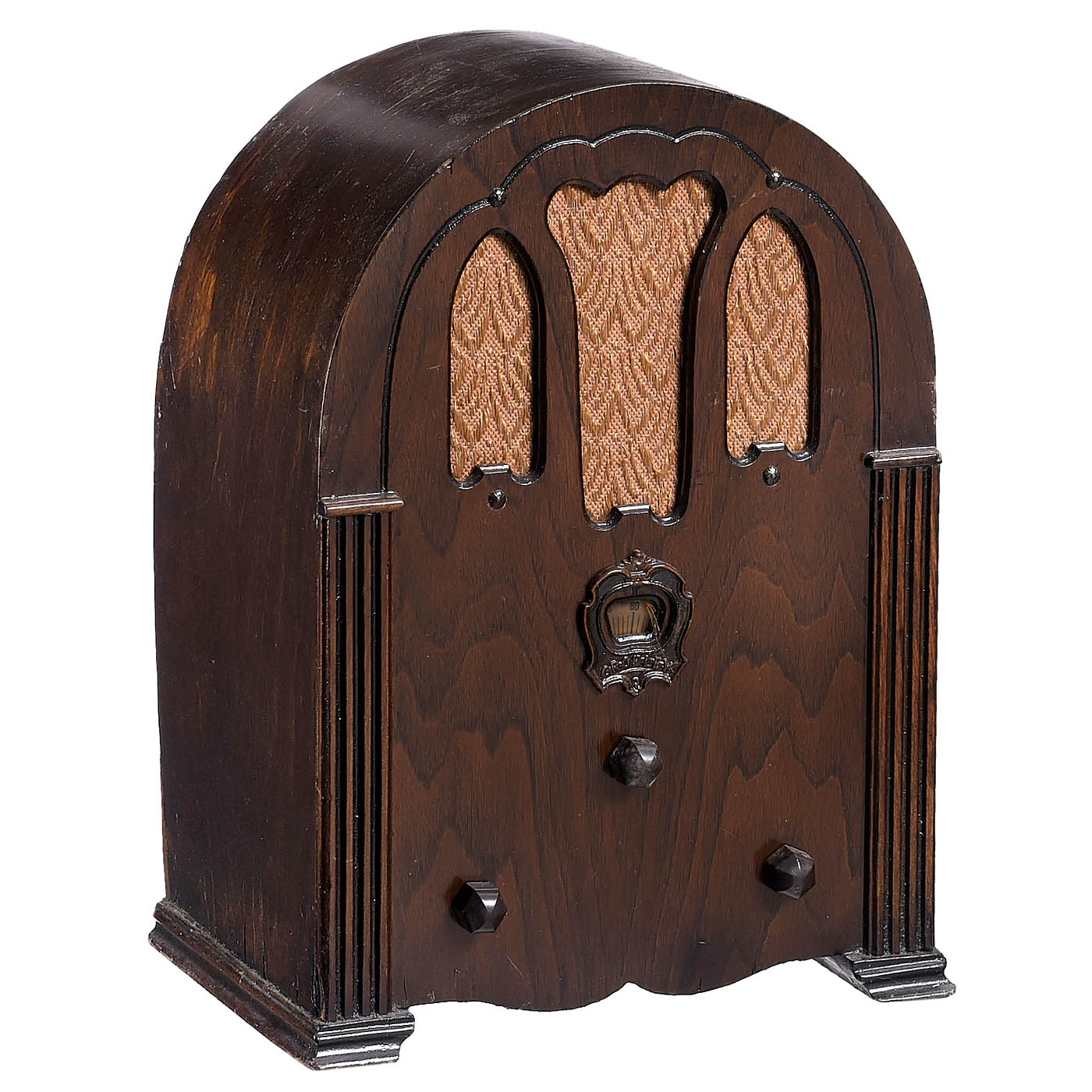 1) "Seibt Roland 5L", c. 1933, Germany, 6 tubes, 110–240 volts AC, dynamic loudspeaker, wood cabinet, complete with tubes and rear panel. – 2) "Ondolinette 364 A", c. 1935, SBR Société Belge Radio-Électrique, 5 tubes, 110–240 volts AC, dynamic loudspeaker, wood cabinet, complete with tubes and rear panel. – 3) "Fornett S5H", c. 1933, Le Téléphone Pratique, Paris, 5 tubes, mains operation, dynamic loudspeaker, wood cabinet, complete with tubes and back panel. – And: 4) "Majestic 20", 1931, Grigsby-Grunow-Hinds Co., Chicago, 6 tubes, 117 volts AC, dynamic loudspeaker, wood cabinet, complete with tubes. – In addition: 3 further radios: "Fornett AD300", "Crosley" and an unmarked receiver.