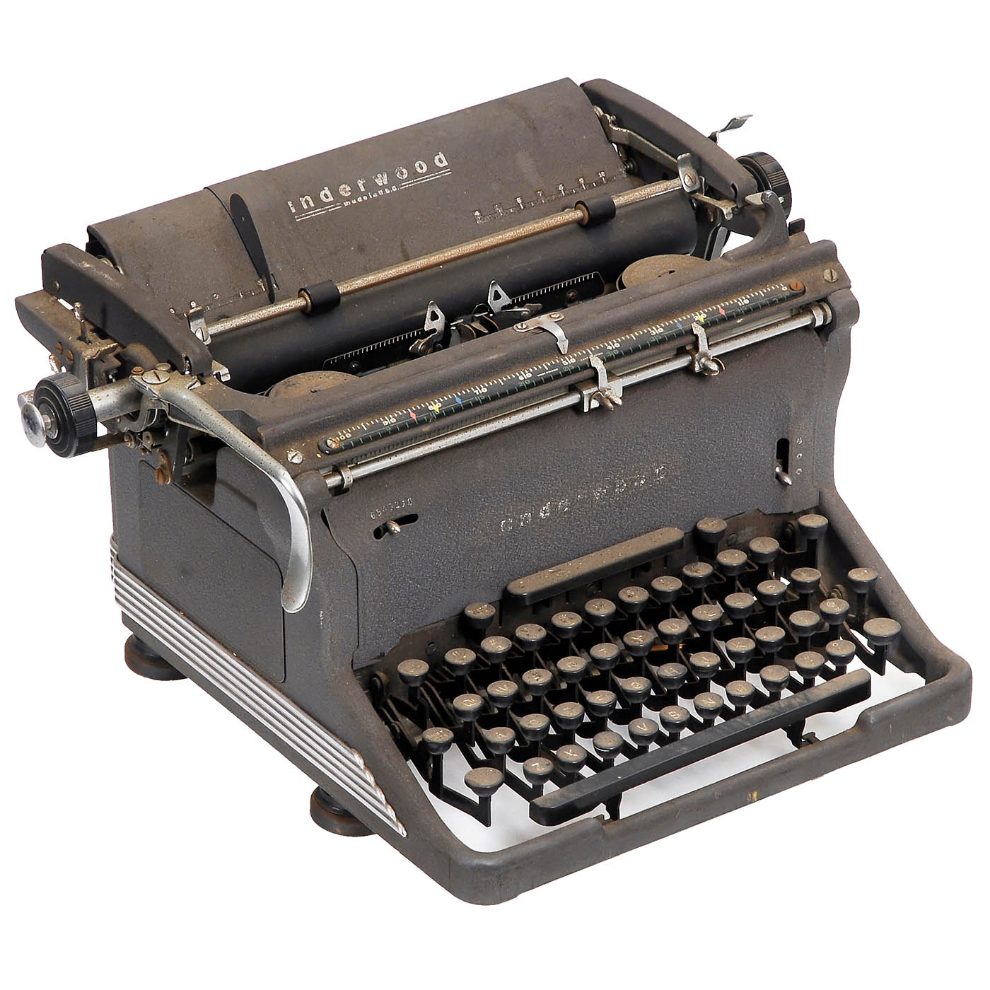 1) "Underwood Master", c. 1939, in need of cleaning. (4/4) - 2) "Royal KMM", c. 1949, with patented Magic Margin construction, working. (3/2-3) - 3) "Woodstock No. 5N", c. 1949, somewhat rusty, mechanism sticks. (4/4) - And: 4) "L.C. Smith No. 8", 1915 onwards, somewhat rusty, mechanism sticks. (4/4)