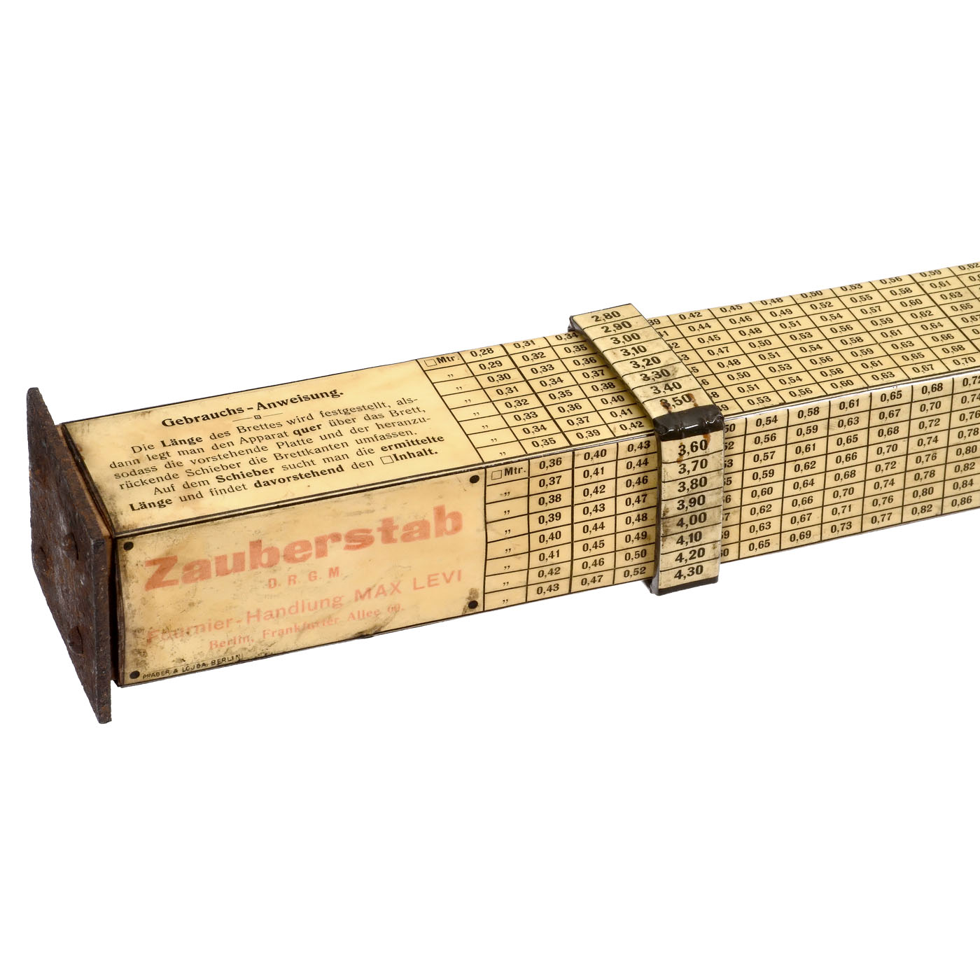 Fournier-Handlung Max Levi. D.R.G.M., for calculating the content of surfaces, square wand with tables and slider, printed instruction manual, length with handle 39 1/3 in.