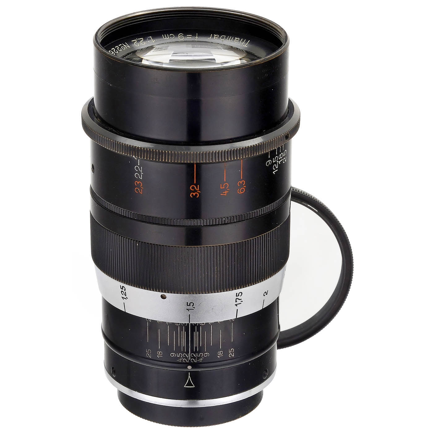 Leitz, Wetzlar. No. 226445, the legendary soft-focus lens, with back cap and matching E. Leitz N.Y. SL filter, clean optics under point light, good focusing and apertures. - Note: The Leitz clear-glass filter can be converted with relatively little effort to create a spot filter with a different diameter.