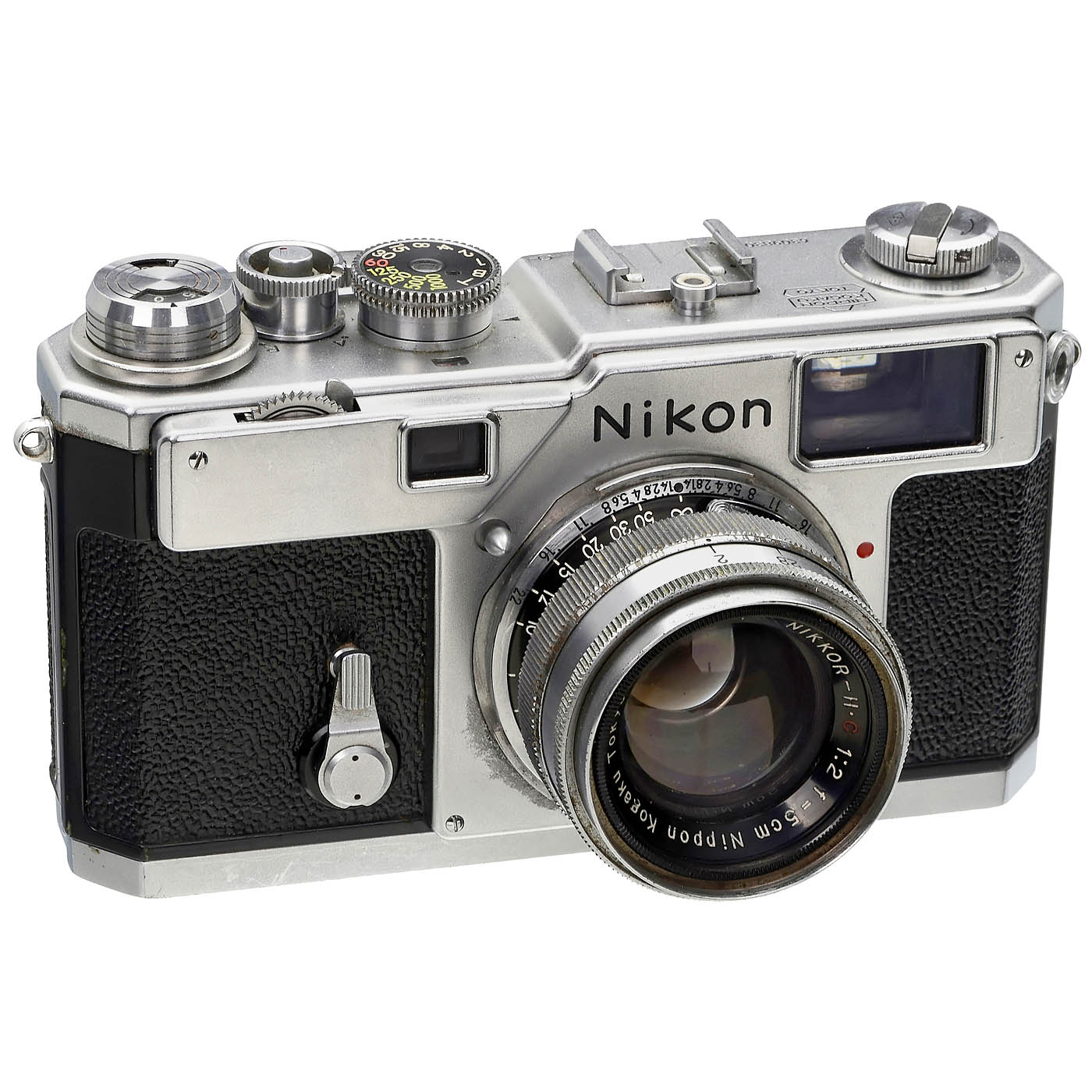 Nippon Kogaku, Japan. No. 6309830, with cloth shutter curtain and a Nikkor-H.C 2/5 cm lens no. 617371, shutter and rangefinder accurate, rear elements show some dust and also putty defects on the outer edge when viewed under point light, otherwise clean and suitable for use. One of the most popular Nikon viewfinder cameras among collectors and users alike.