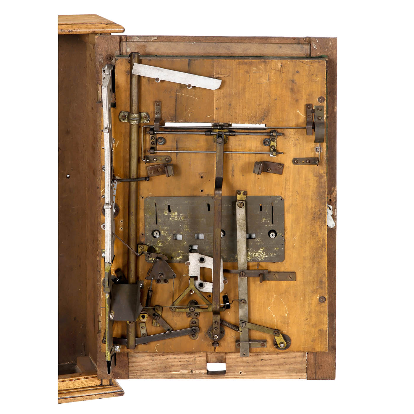 3 Balls down the Chimney to win, mechanical, lithographed playfield, showing the cliffs of Dover and a cottage, oak case, brass fittings, some parts poorly repaired, limited functions. - Unusual and very rare.