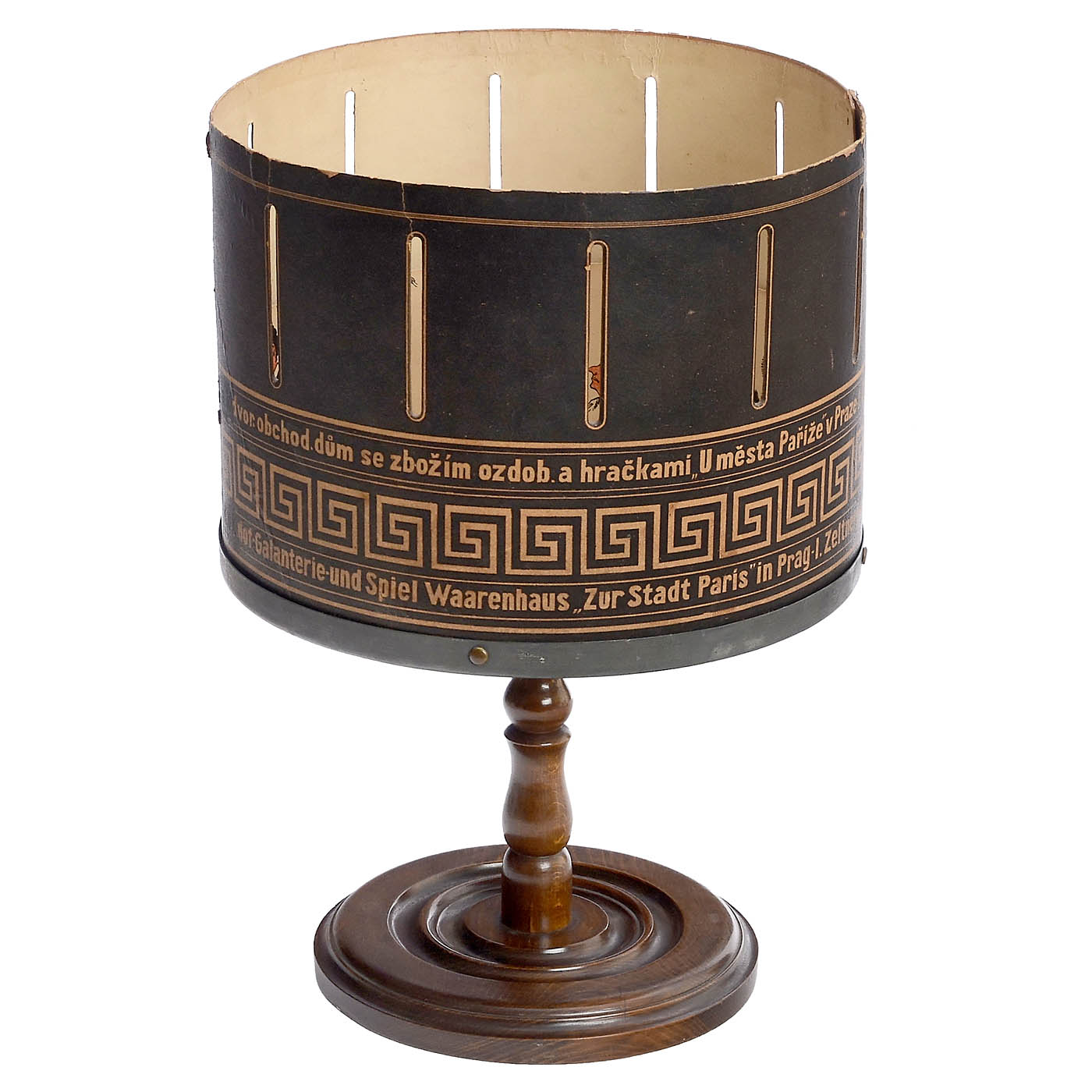 Hof-Galanterie- und Spielwaaren-Haus "Zur Stadt Paris" in Prague. Labeled in Czech and German, drum Ø 11 in., wood base, with 10 different single-sided strips of 35 ½ x 3 ¾ in., height of the Zoetrope: 15 3/4 in. – Very rare!