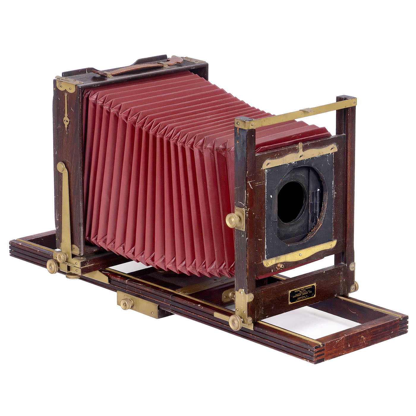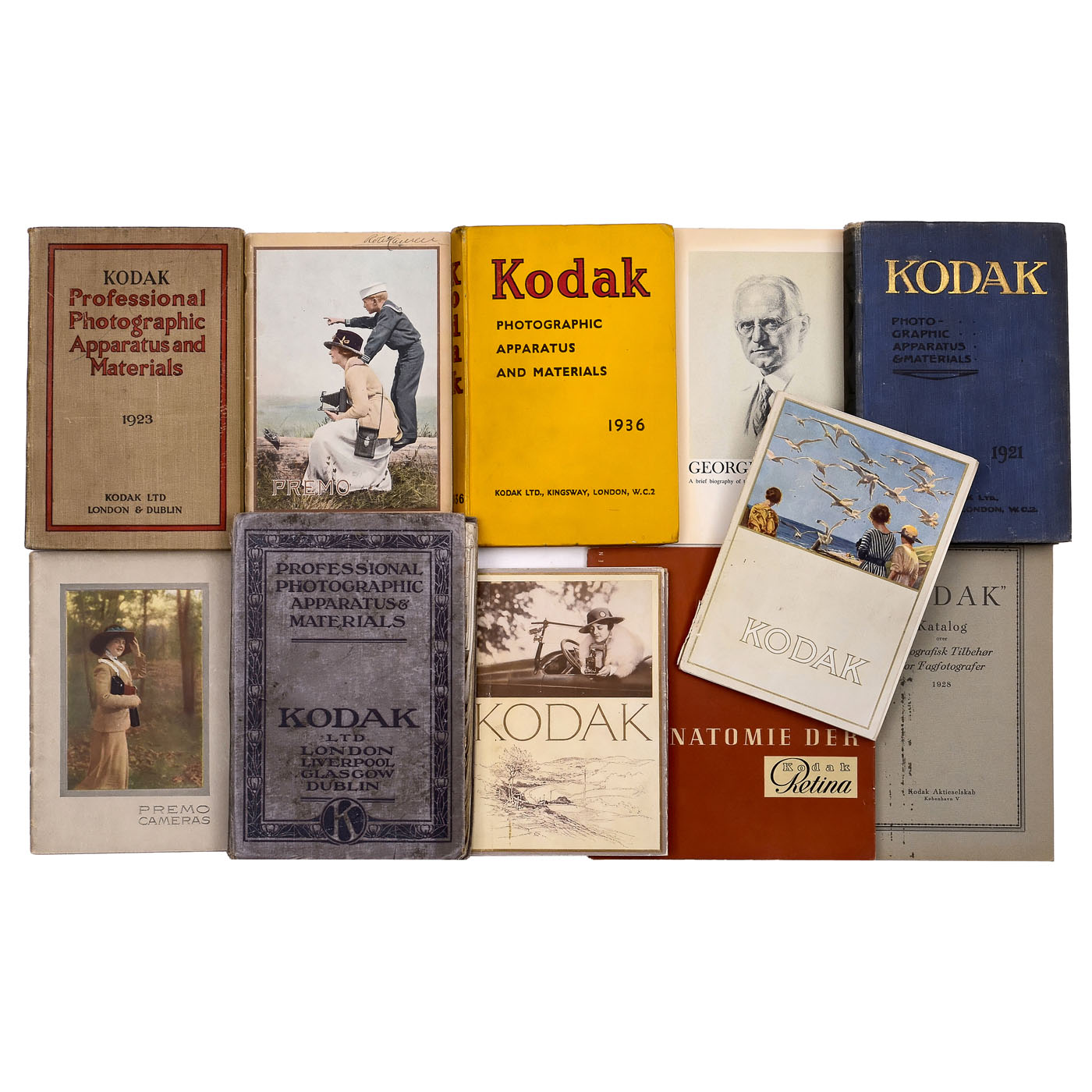 Eastman, Rochester. 1) Stereo Hawkeye Model 4 no. 9981, format 3 ? x 3 ? in., on 90 mm wide film, version with Goerz Dagor 6.8/120 mm, shutter releases perfectly, glass is clean under point light, standard is stable. (3/2-) ÿ 2) No. 5 Cartridge Kodak Model E, for 5 x 7 in. for film or plates, Bausch & Lomb Rapid Rectilinear in Eastman Kodak shutter, working, with film and plate back, focusing screen back, and 3 double cassettes. (3-/3) ÿ 3) Kodak View Camera 2-D, for 8 x 10 in., with extension and focusing screen back. (3/3) ÿ And: 4) Over 30 catalogs, brochures and image samples from 1894 onwards, in varying conditions.