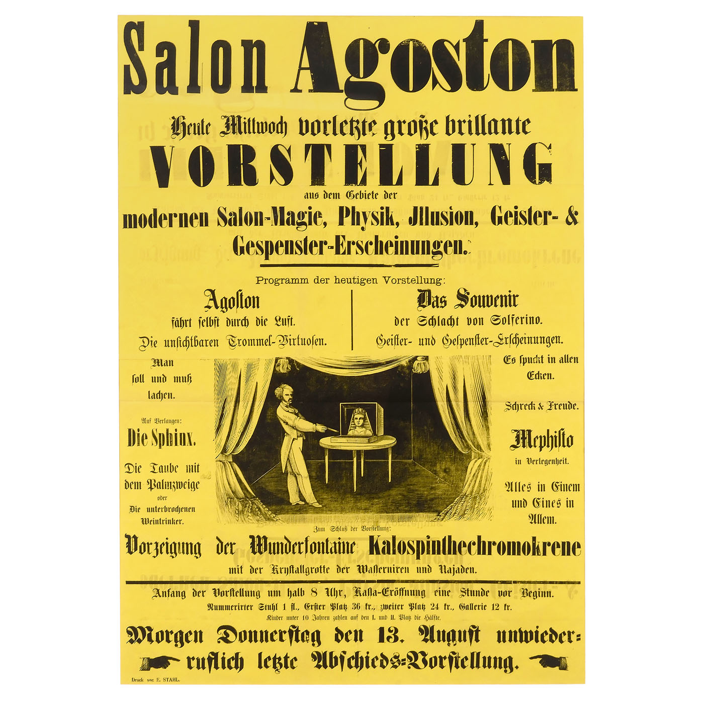 Original and in fantastic condition. Very thin yellow paper and woodcut print, 54 x 78 cm in size, framed under a mat 71 x 95 cm. The thin paper is unmounted and loose. Worthy of note is the presentation of a modified magic lantern for color-effect lighting at a fountain, the Kalospinthechromokrene, which was probably the most expensive projector in any catalog of the time.