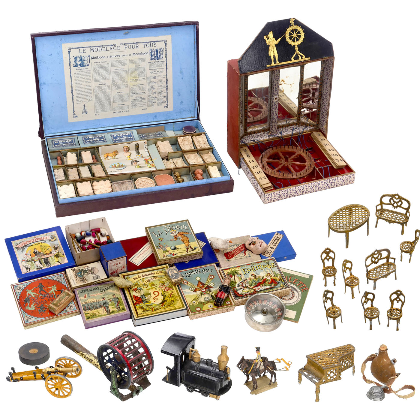 1) "Le Modelage pour Tous" (Modeling for everyone), SF Paris, SGDG patented, 2 broken and 3 incomplete molds, see photo, box somewhat torn, the compartments on the upper row are empty, they contained the clay for moulding.