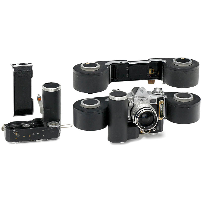 Kamera-Werkstätten, Dresden. Praktina II A, Flektogon 2.8/35 mm 镜头, 改换电力装备, 配有2支马达和2支大片盒. 相机上有手刻货单号. 未检测!