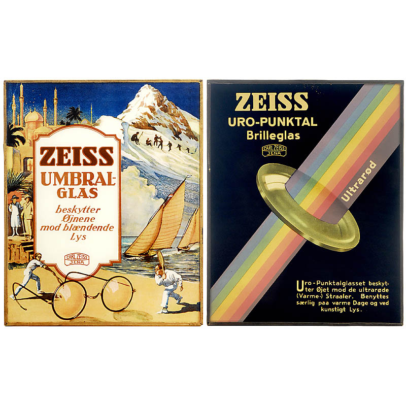 2 块 Zeiss眼镜的玻璃广告牌, 丹麦文, 24x30cm, 罕见