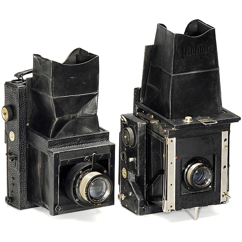 拍品描述: 9x12 cm 格式, 帘幕式快门(正常), Tessar 4.5/15 cm, 毛玻璃后背--炙手可热的单反相机