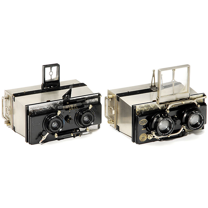 拍品描述: 全景版本,6x13 cm, 2支蔡司耶拿镜头 Tessar 3.5/8.5 cm (no. 1114218 及 239),闸刀式快门,牛顿取景器,可替换片盒,带相机套